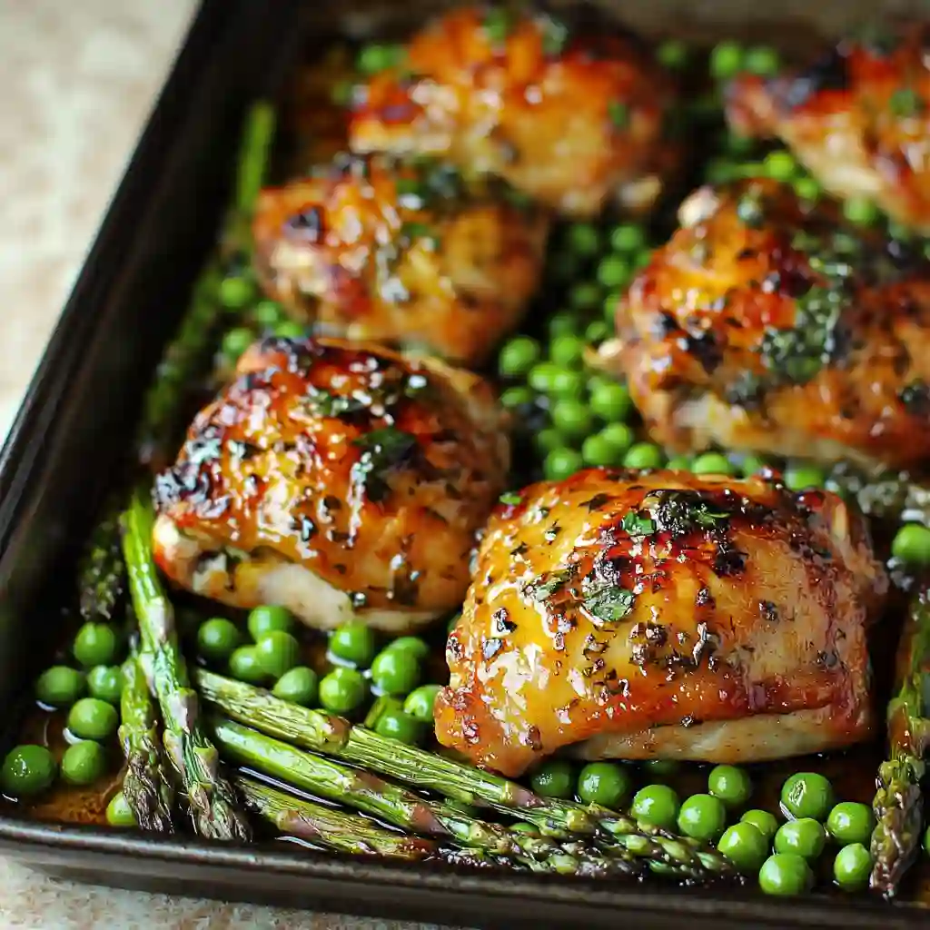 Spring Food Lemon Herb Chicken Thighs with Asparagus and Peas