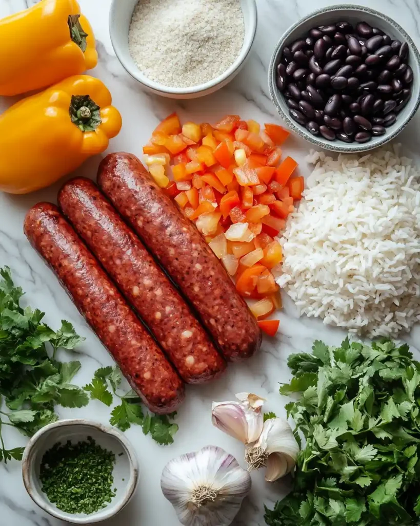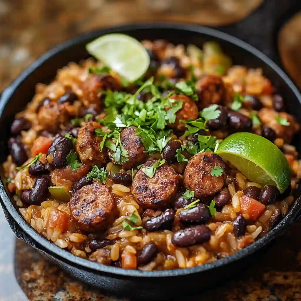 - Perfect balance of smoky sausage, tender rice, and creamy beans.
