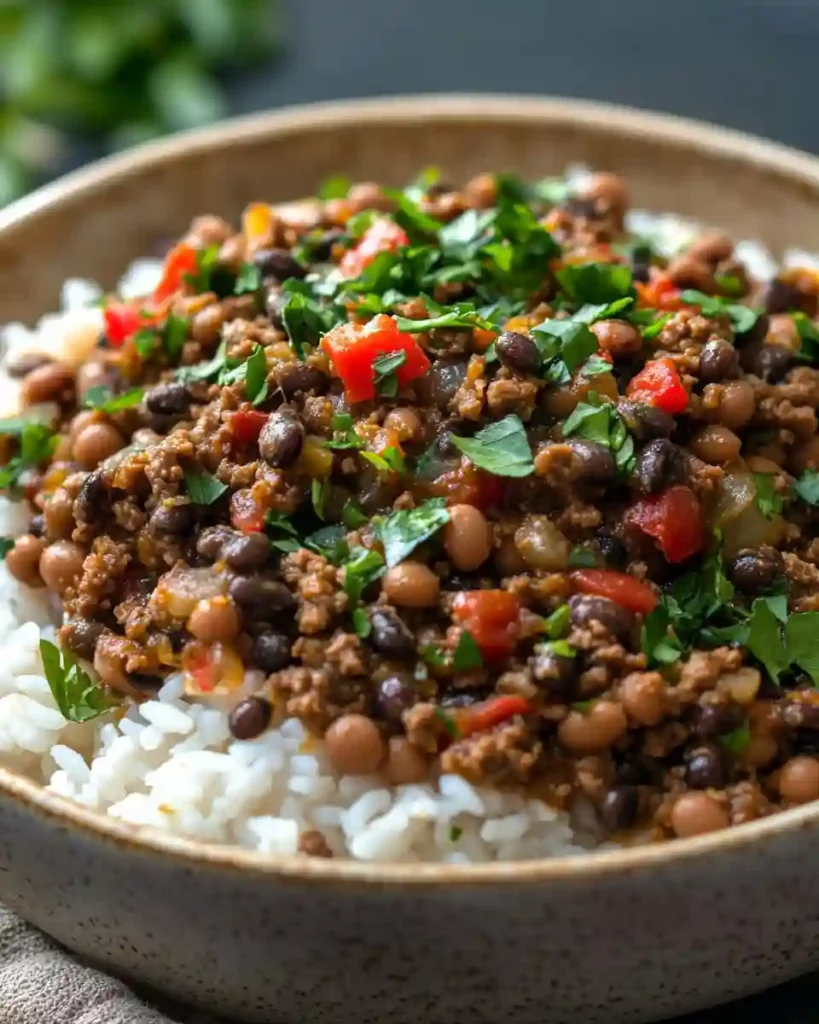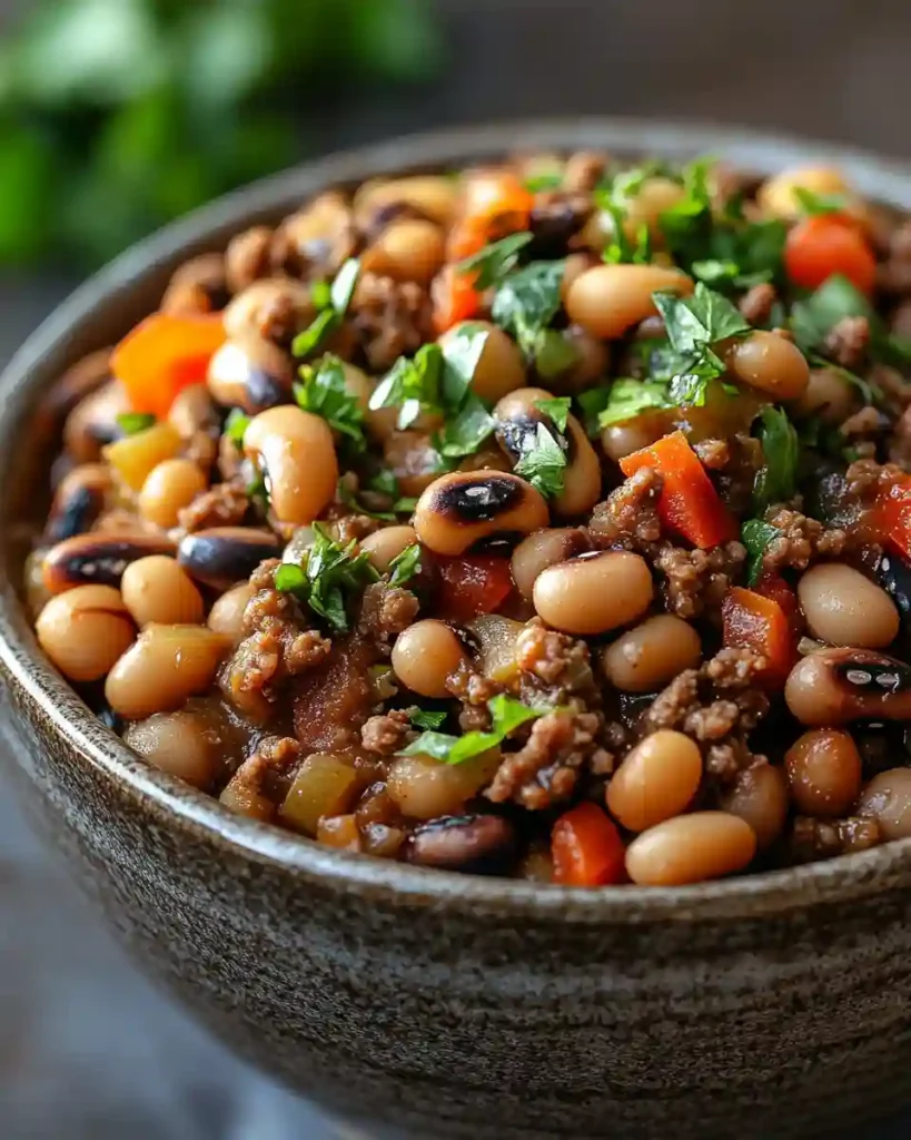 This Black Eyed Peas And Ground Beef Recipe is a warm, hearty, and comforting dish inspired by Southern classics like Hoppin’ John. With seasoned ground beef and tender black-eyed peas simmered in a savory tomato broth, it’s perfect for busy weeknights and satisfying meals.
