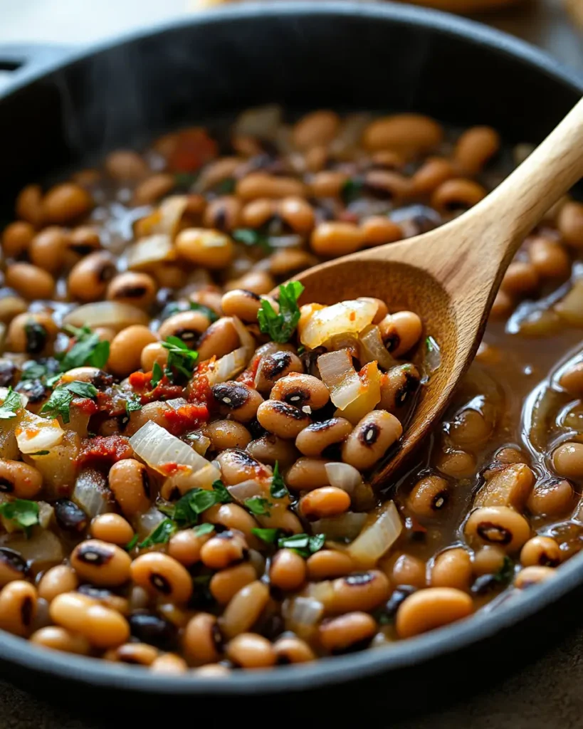 Stick with olive oil, skip the meat, and add a splash of veggie broth. It’s an easy switch to create a nourishing Vegan Black Eyed Peas Recipe that’s still full of flavor and heart.