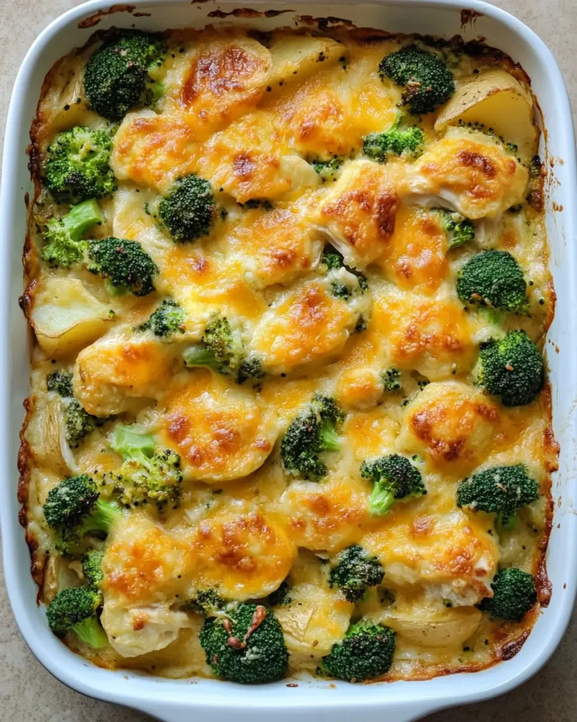 Cheesy Chicken & Broccoli Scalloped Potatoes brings comfort straight to your dinner table. This creamy baked casserole layers tender potatoes, juicy chicken, and fresh broccoli under a blanket of melted cheese. It fits busy weeknights, yet it feels special enough for Sunday supper. Because everything bakes together in one dish, you save time and still serve a meal your family will ask for again. If you need easy casseroles for dinner that feel hearty and homemade, this recipe checks every box.
