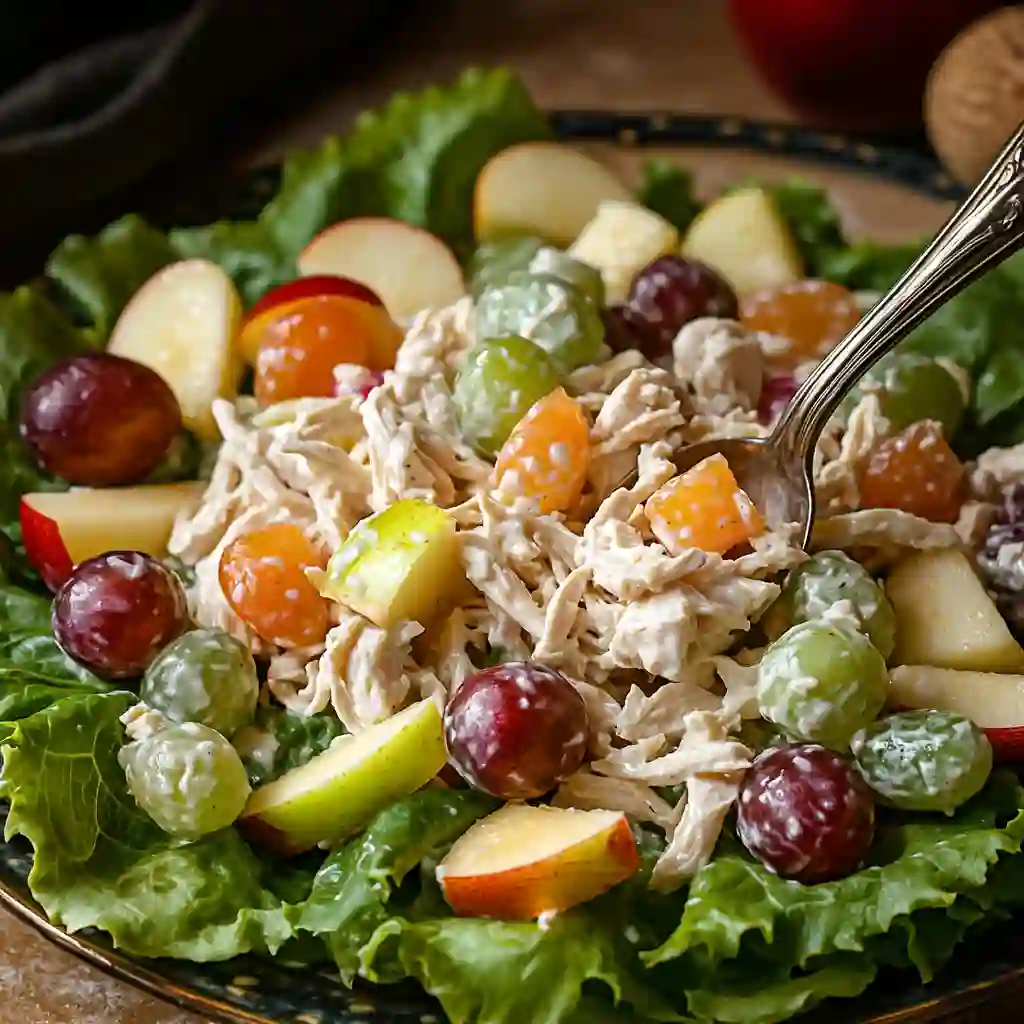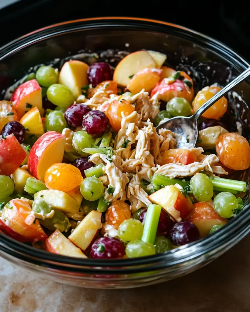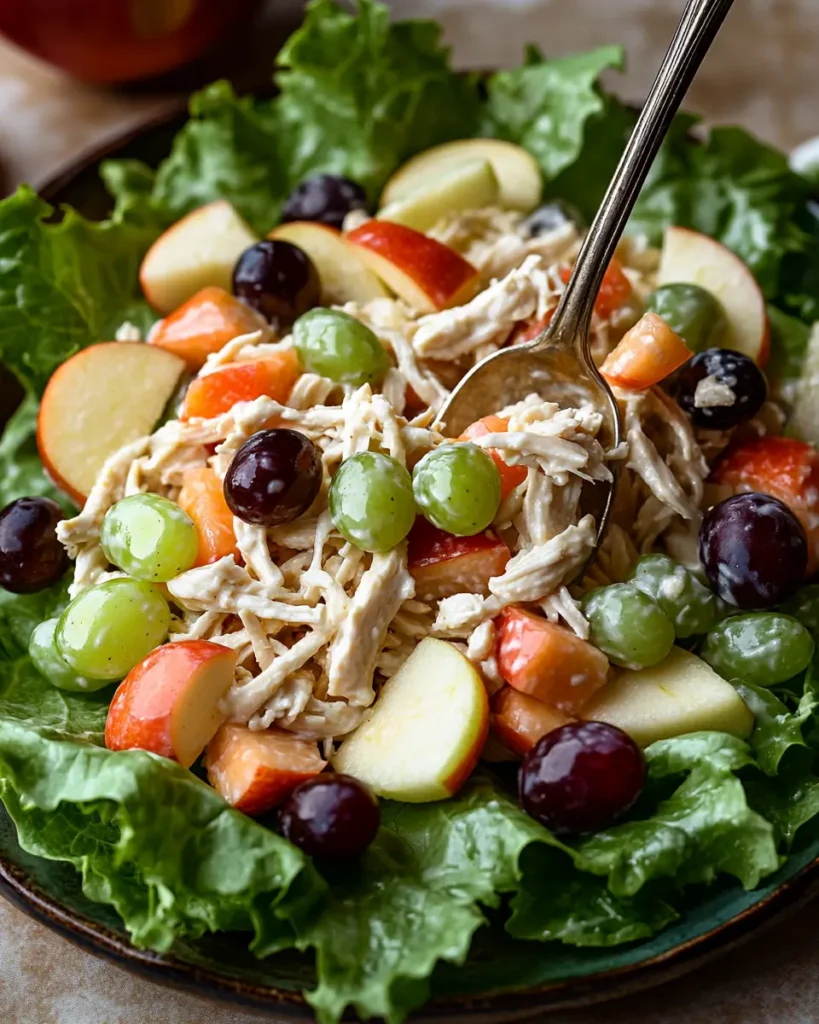 Yes, shredded chicken works beautifully in this dish. The smaller pieces hold onto the creamy dressing and mix easily with the fruit. It is one of the easiest healthy chicken recipes you can make with leftover chicken. Many families keep this recipe on repeat because it turns simple ingredients into something fresh and satisfying.