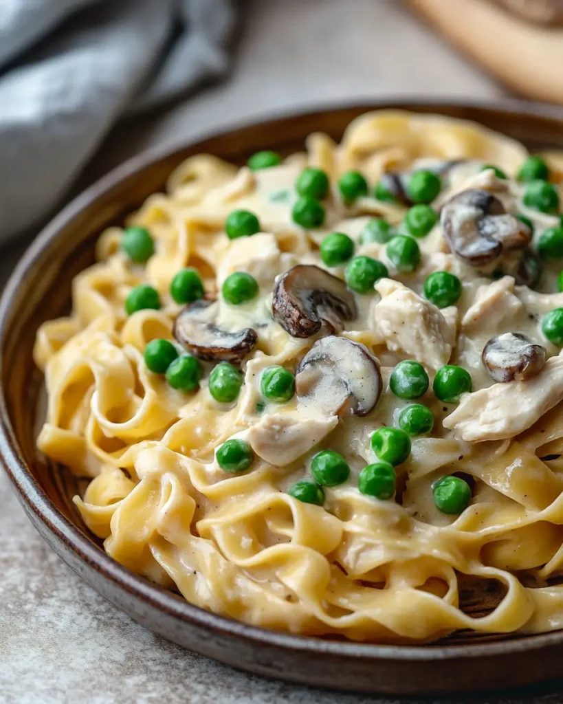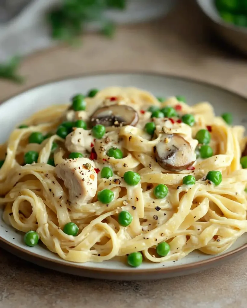 This can fit into healthy dinner ideas when made with balance. The chicken adds lean protein, and peas bring fiber and nutrients. You can control the butter amount to keep it lighter. Using whole grain noodles is another simple swap. It is one of those healthy chicken recipes that feels comforting but can still be part of a balanced meal. Pair it with vegetables on the side for even more goodness.