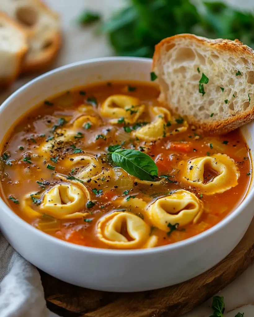 - Tortellini: Cheese-filled tortellini makes the soup rich and hearty.