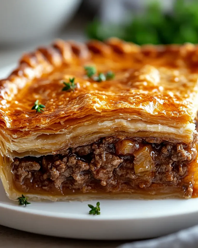 Absolutely, this meat pie recipe works well with many vegetables. Corn, diced green beans, or mushrooms all blend nicely with the beef. Just make sure to cook watery vegetables first so the filling stays thick. You can even use leftover roasted vegetables from other recipes using ground beef. As long as the mixture stays thick and savory, the crust will bake up golden and crisp every time.