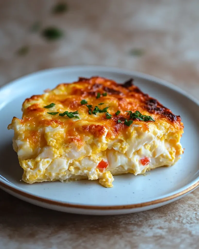 This Crab Brunch Casserole Recipe is simple, comforting, and full of gentle seafood flavor. It is easy to prepare and perfect for relaxed mornings, brunch gatherings, or even quick evening meals. The creamy eggs, tender crab, and melted cheese create a warm dish that feels special but requires very little effort.
