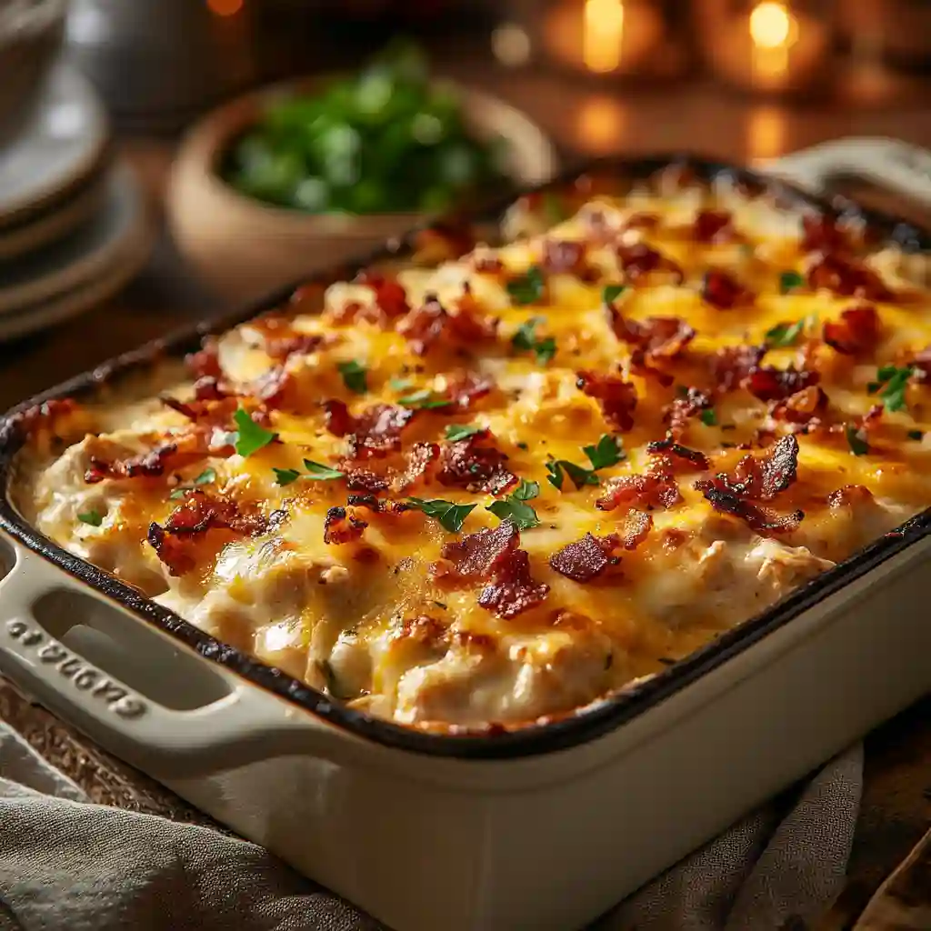It has the same comforting, creamy feel but with a richer flavor from bacon and ranch seasoning. Think of it as a cozy cousin to that classic dish, with a few extra layers of indulgence.