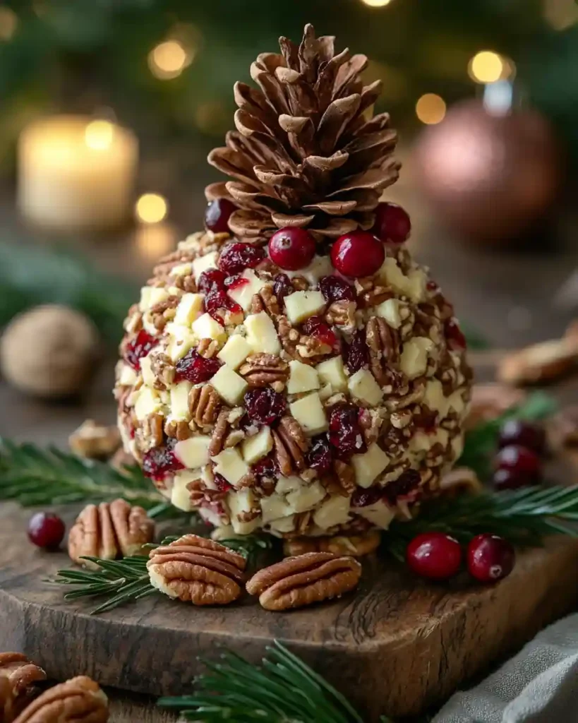 Serve your Cranberry Pecan Pinecone Cheese Ball on a small wooden board surrounded by crackers and fresh herbs for a rustic holiday look. It’s one of those Best Christmas Appetizers that looks like it came straight from a magazine but is simple enough to make with your kids helping beside you.