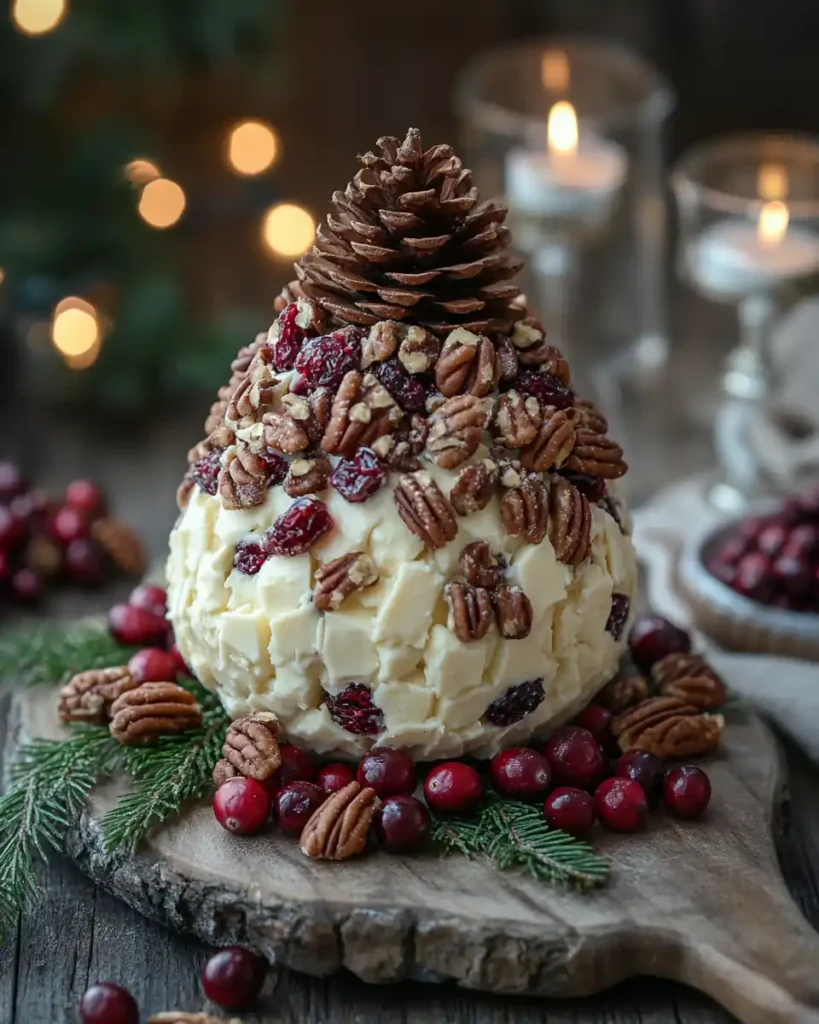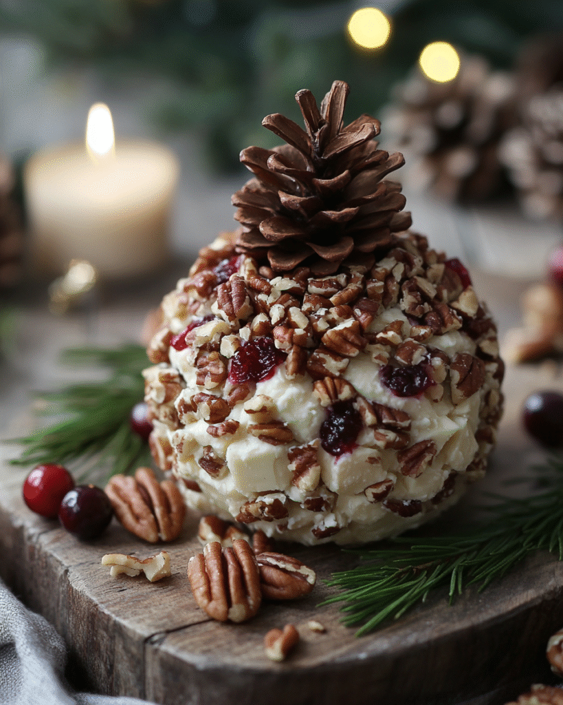 This Cranberry Pecan Pinecone Cheese Ball is one of those Christmas Eve Appetizers that instantly steals the spotlight. It’s creamy, tangy, and studded with sweet cranberries and crunchy pecans, shaped into a festive pinecone that looks just as good as it tastes.