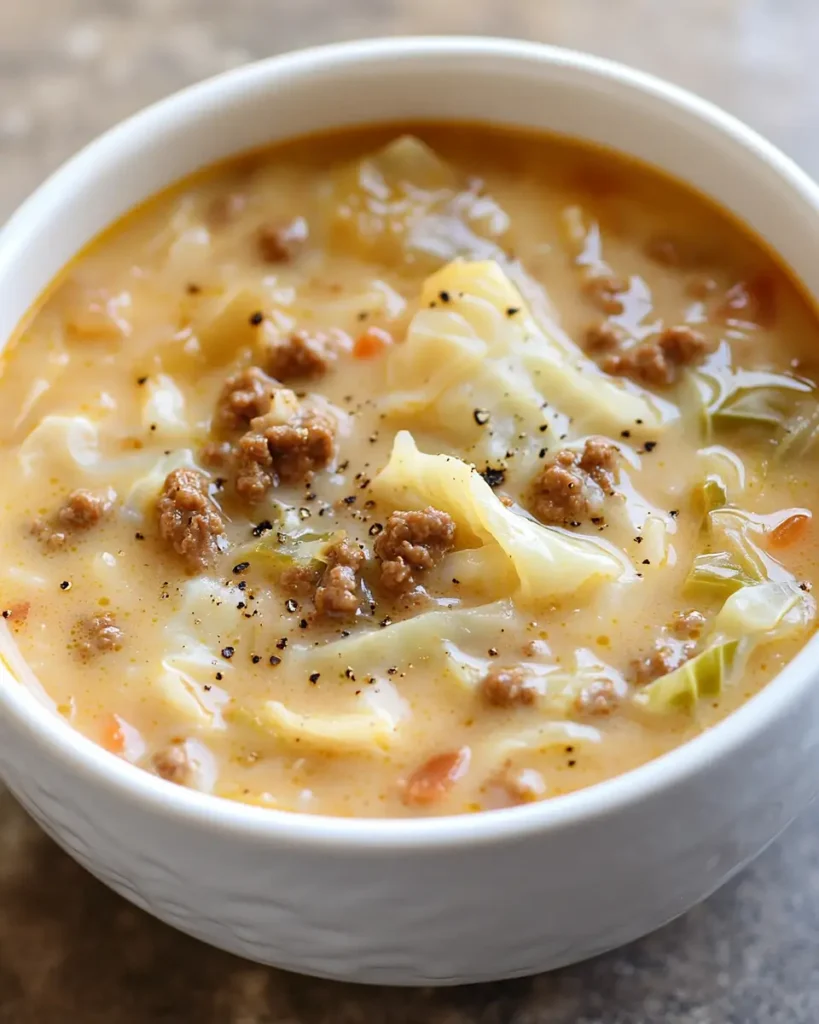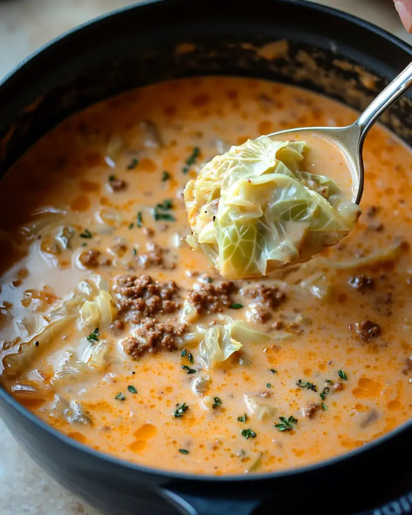 You can replace heavy cream with half and half for a lighter version. Ground turkey or chicken can also be used instead of beef. Adding diced potatoes or a sprinkle of shredded cheese makes the soup even heartier.