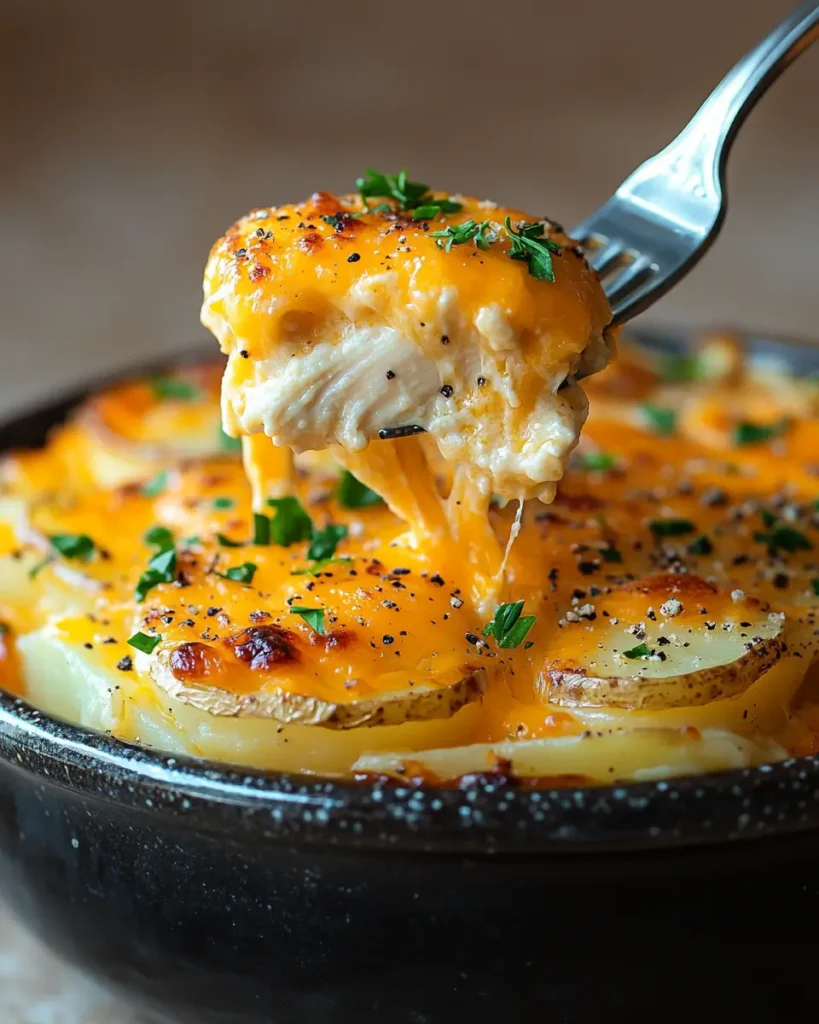 This Creamy Chicken Scalloped Potatoes recipe is warm, creamy, and easy to make. It brings together soft potatoes and tender chicken in one comforting dish. It is perfect for weeknights, family dinners, or even lazy Sundays. The golden top and creamy layers make every bite satisfying.