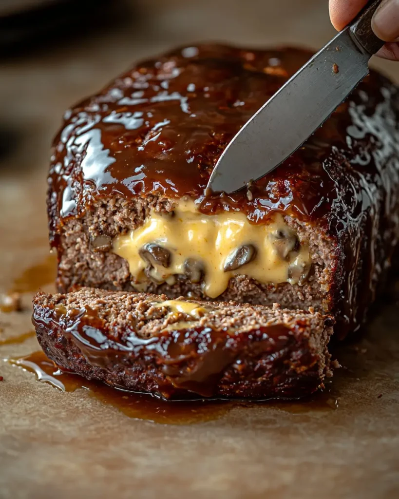 - The creamy mushroom layer turns a simple loaf into something that tastes like a 5 star meatloaf recipe.