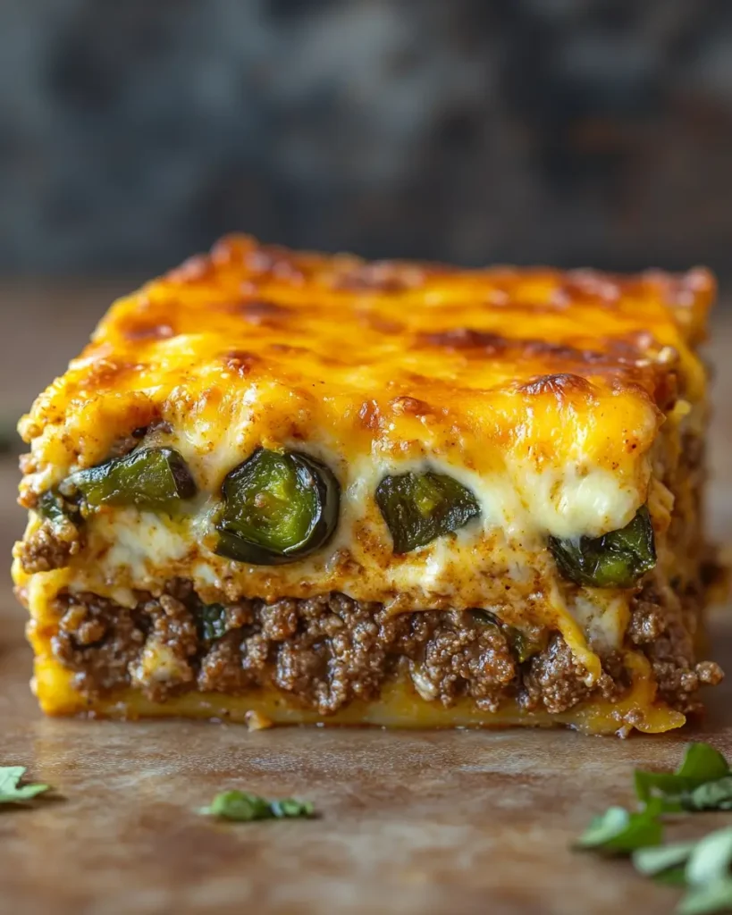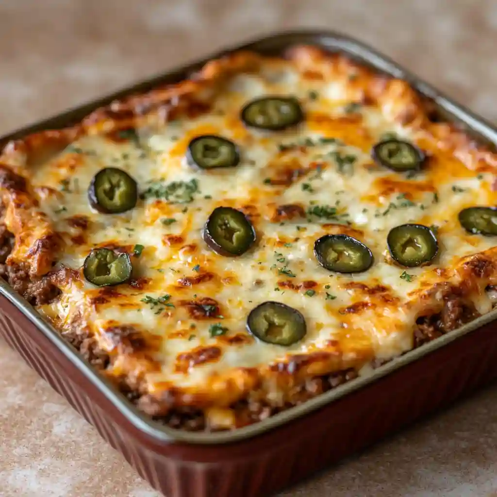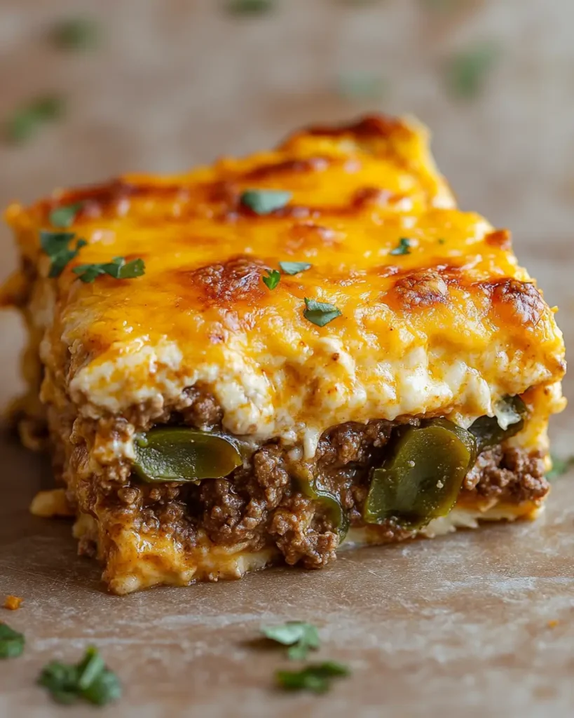Crispy Ground Beef Chile Relleno Casserole is a warm, cheesy meal that is easy to make and full of bold flavor. Roasted green chiles, seasoned beef, and melted cheese bake together into one cozy dish. The top becomes lightly crisp while the inside stays soft and creamy. It smells rich and savory right from the oven.