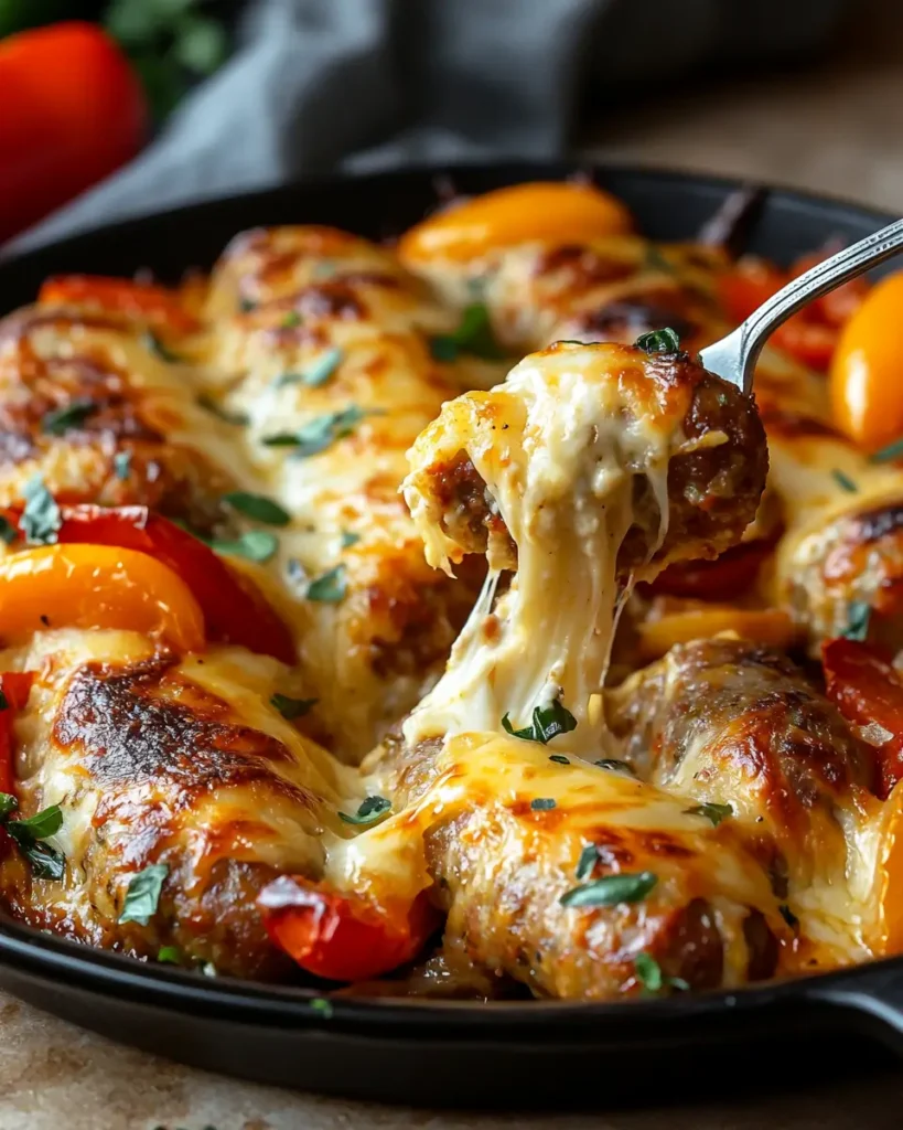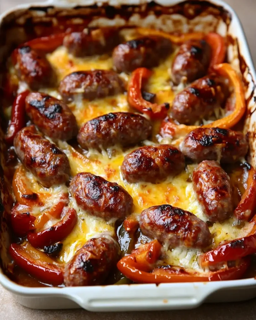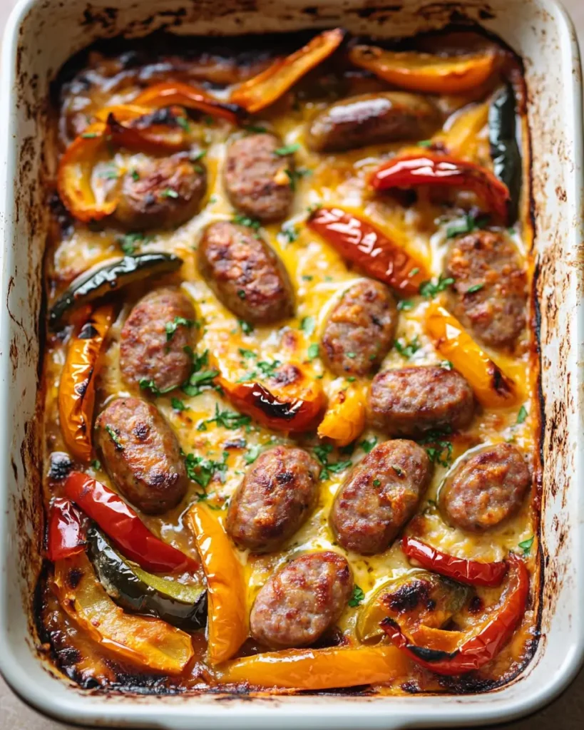 - Bake uncovered for 25–30 minutes until sausage is browned and edges are crisp.