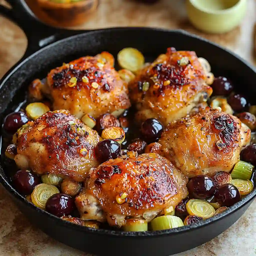 Yes, this recipe can be partially prepared ahead of time. You can slice the leeks and wash the grapes earlier in the day. When dinner time comes, all you need to do is sear the chicken and place the skillet in the oven. Because everything cooks in one pan, it stays simple and quick. That is why it fits perfectly into quick dinner ideas for busy evenings.