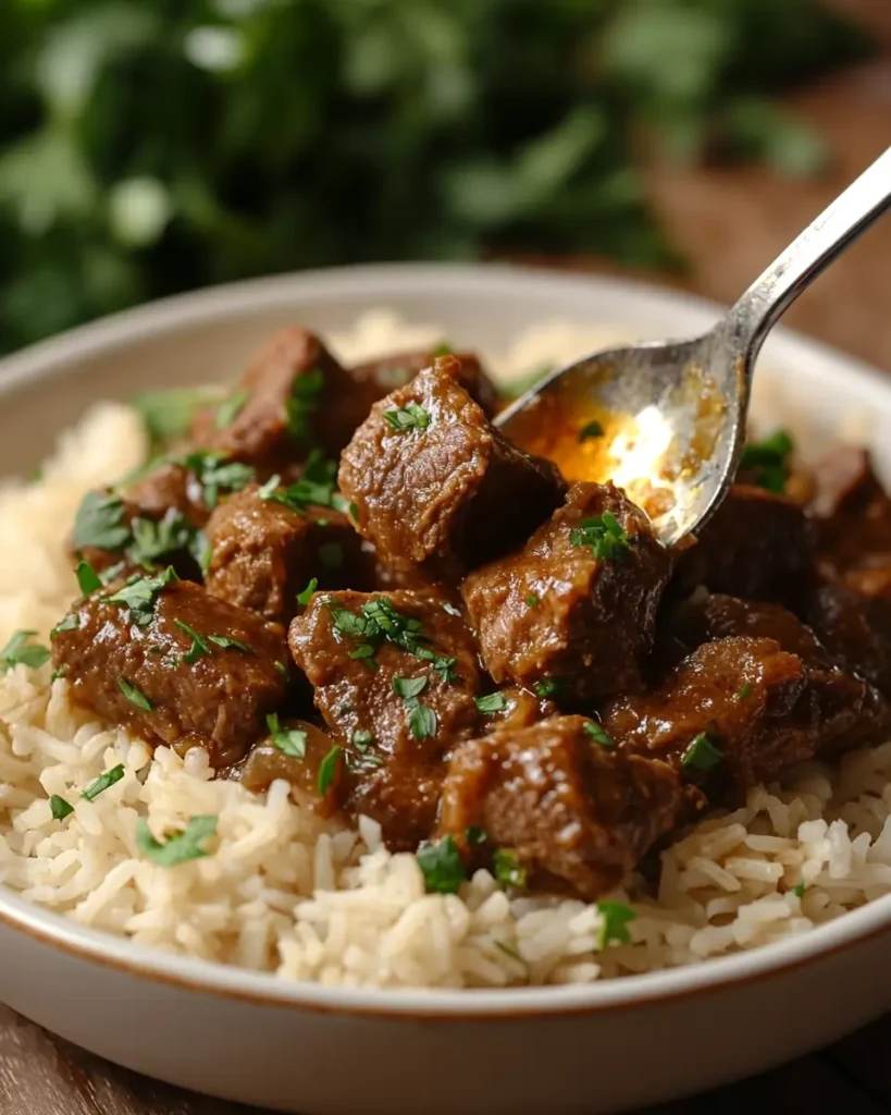 Jasmine or basmati rice both work well because they stay light and fluffy. Avoid sticky rice, which can become too soft under the sauce. The goal is tender grains that soak up all that slow-cooked goodness.