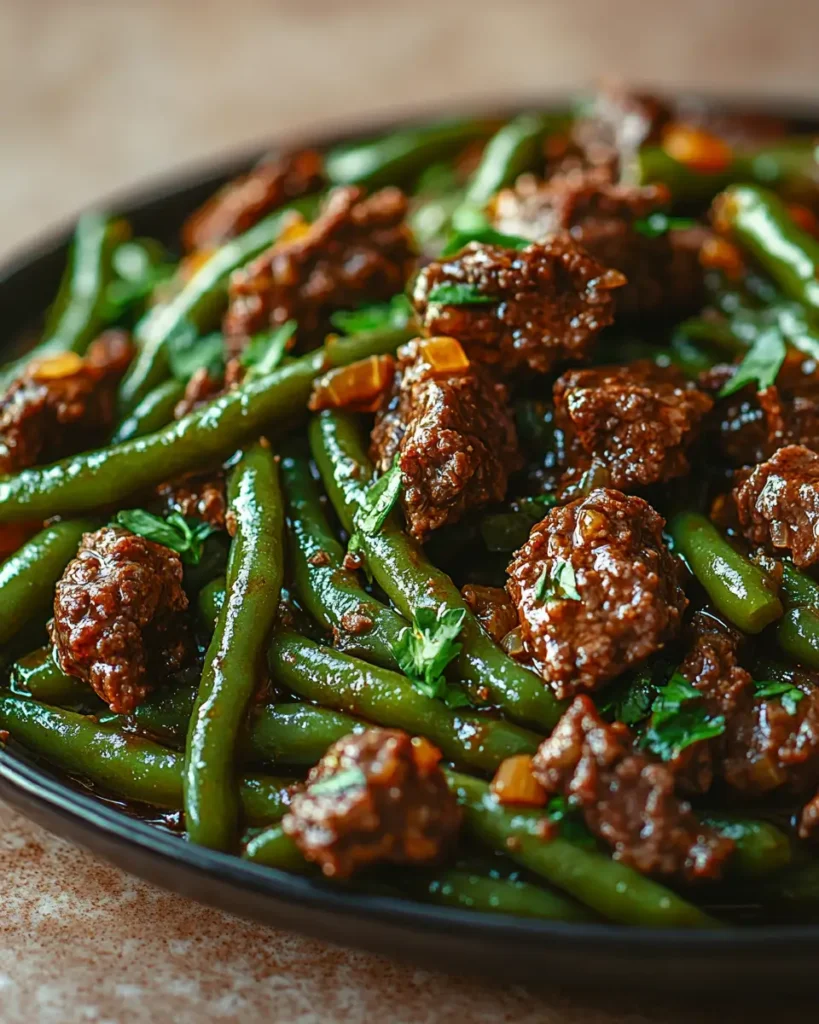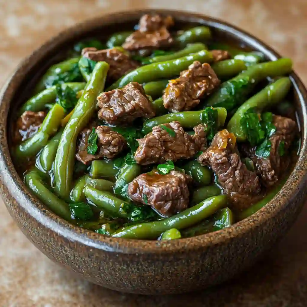 Tender green beans simmer slowly with juicy beef, garlic, and savory spices to create a rich Southern comfort dish. The beans soak up all the delicious flavor while the beef becomes melt-in-your-mouth tender. A simple, hearty meal perfect for cozy family dinners.