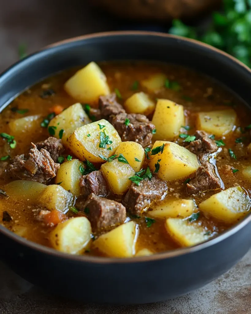 This easy beef and potato soup is warm, filling, and simple to make. It has soft potatoes, tender beef, and a rich broth that smells comforting as it cooks. The texture is thick but still easy to eat, perfect for a calm dinner at home. If you like easy soup with potatoes that feels cozy without being heavy, this recipe is a great choice. It is simple enough for busy days and gentle enough for anyone who wants easy to eat soups that still taste full and satisfying.