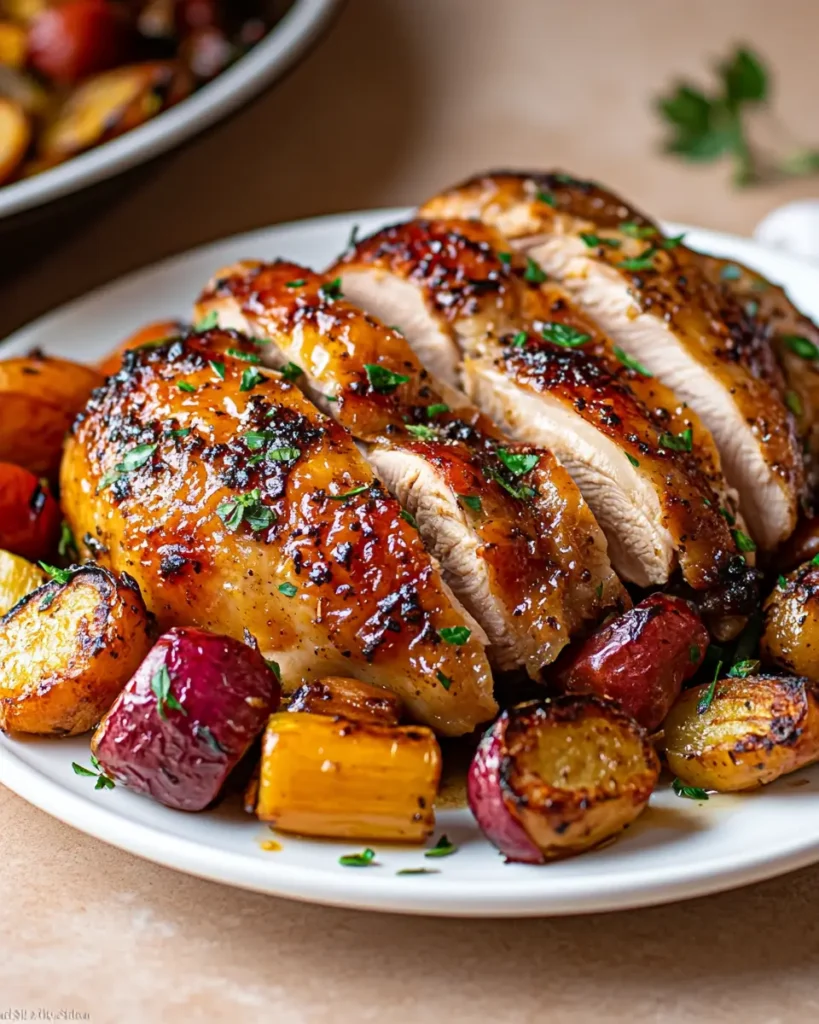 • Garlic and fresh herbs: bring deep flavor to the roasted chicken.