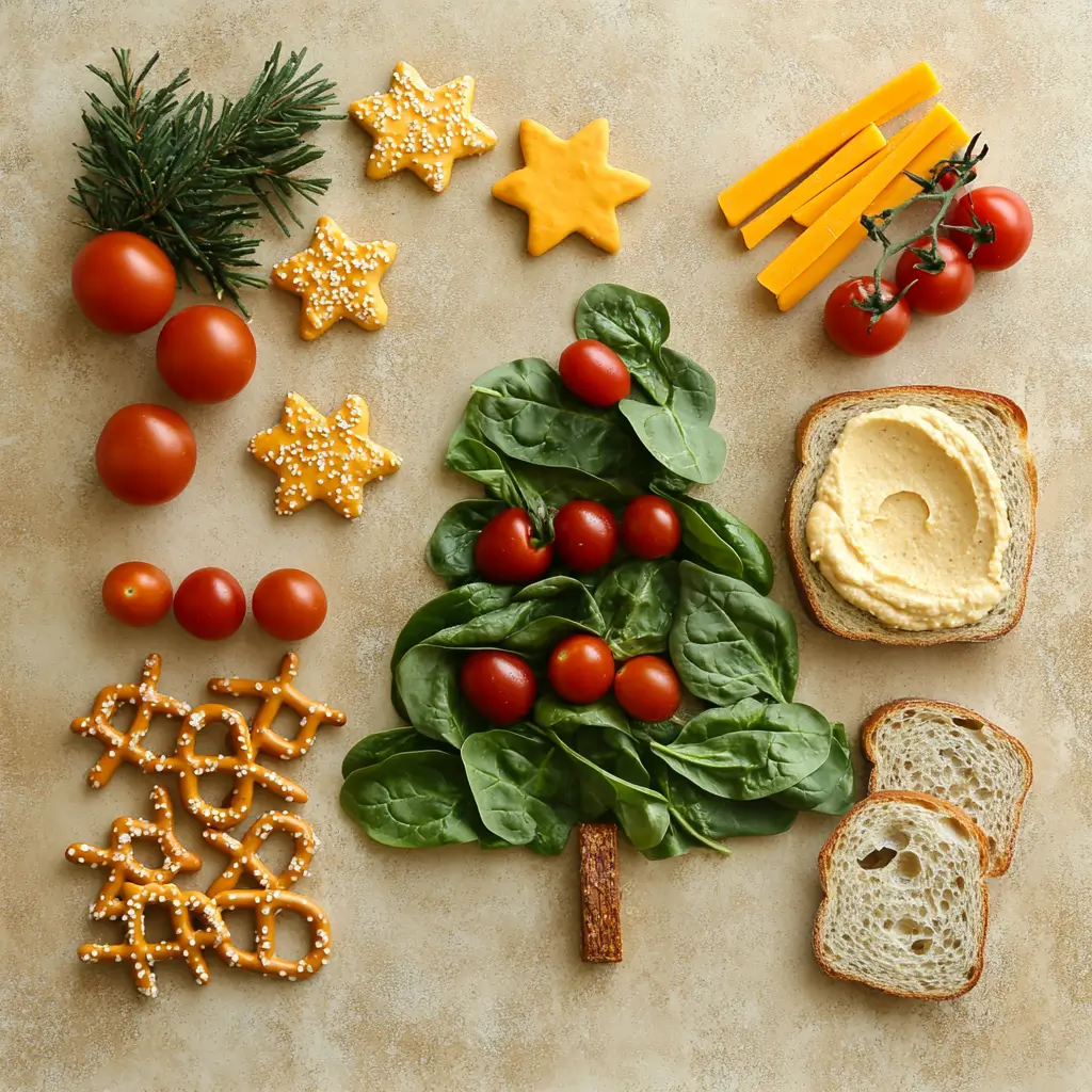 - Layer spinach or basil leaves over the spread to create a green tree effect.