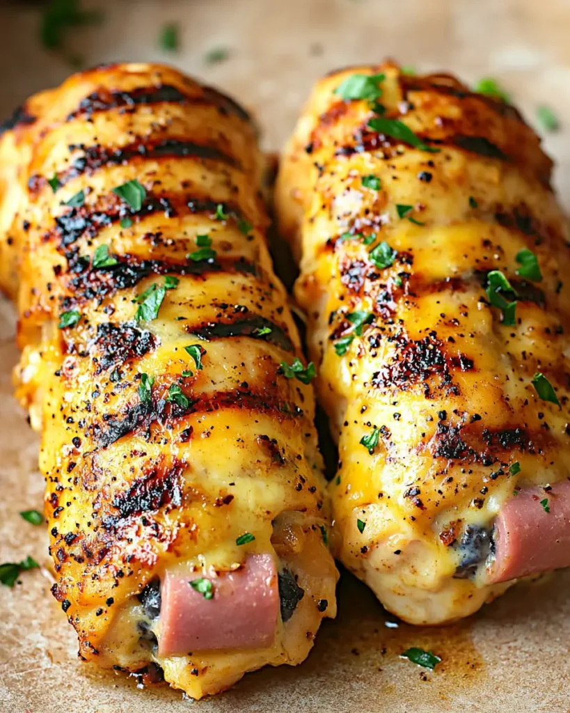 Juicy grilled chicken stuffed with melty cheese and savory ham, finished with smoky flavor and golden edges. This easy cordon bleu feels indulgent yet light, making it perfect for a cozy dinner that still keeps things fresh and simple