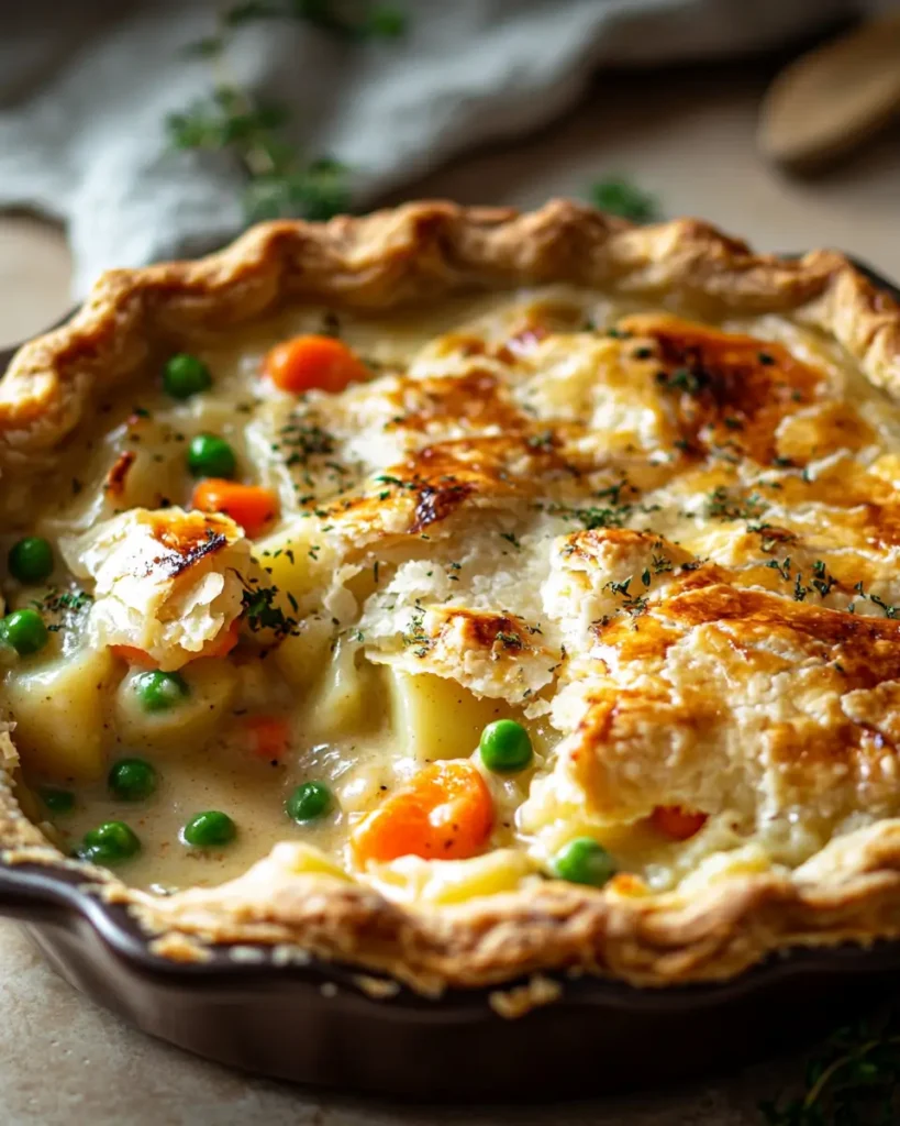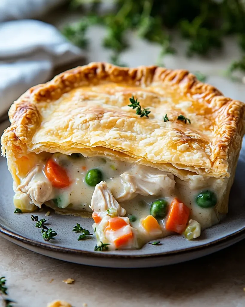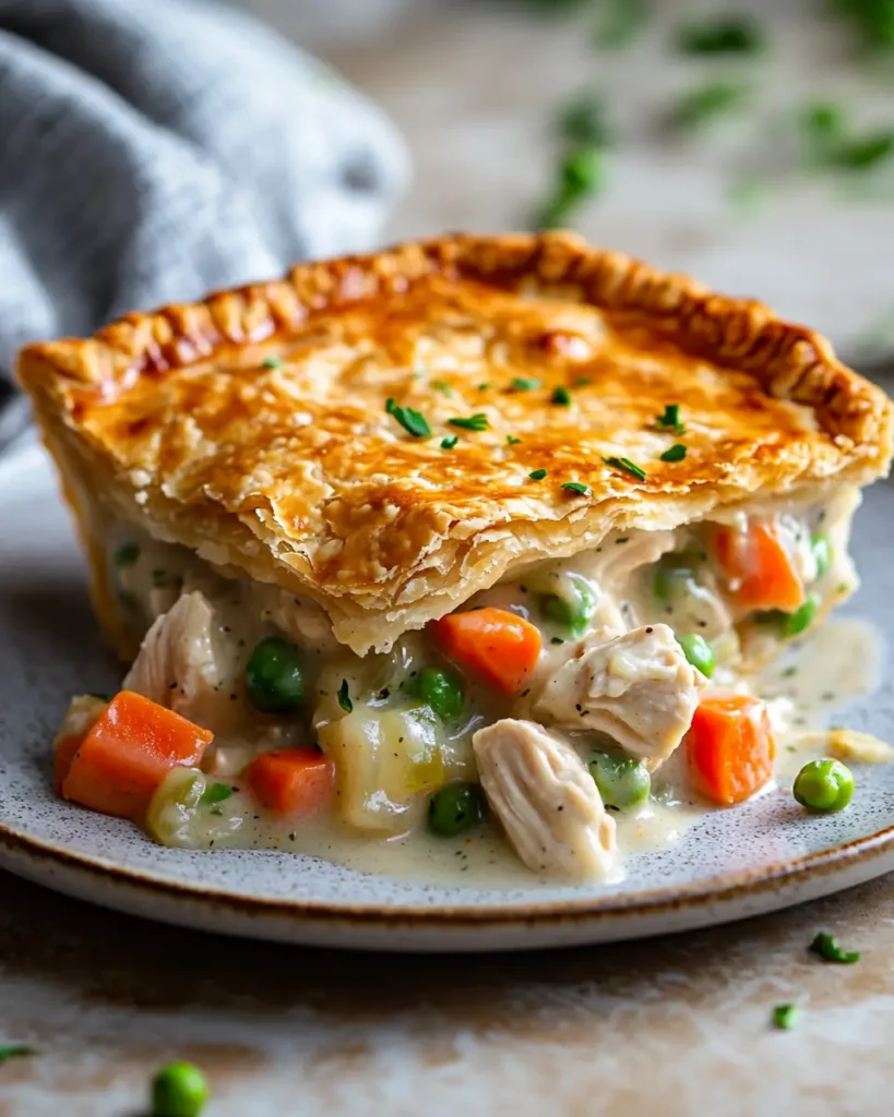 Golden, flaky crust gives way to a rich, creamy filling packed with tender chicken and garden vegetables. This cozy classic delivers pure comfort in every bite, simple to make, deeply satisfying, and perfect for bringing everyone together around the table