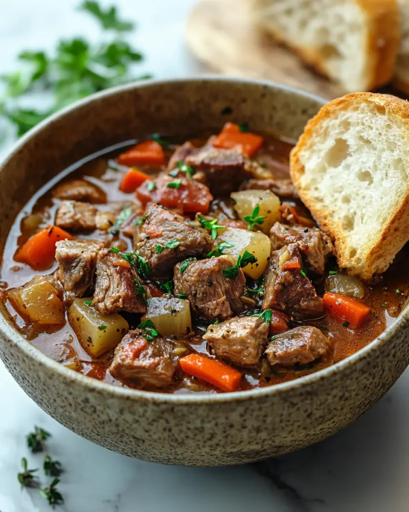 - Beef or chicken broth: Keeps the stew rich and comforting.