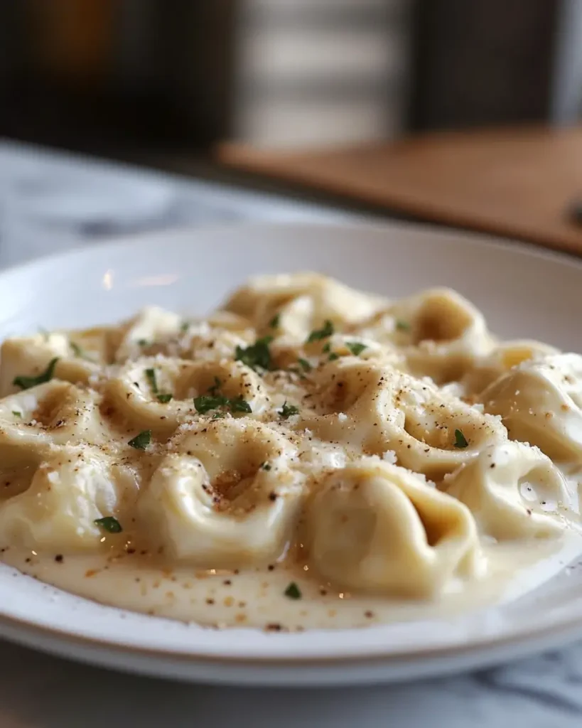 To lighten the sauce, use half cream and half broth. Add spinach, chicken, or sun-dried tomatoes for variations. Frozen tortellini works too; add 1–2 minutes cook time.