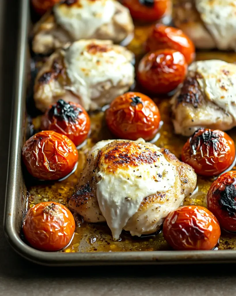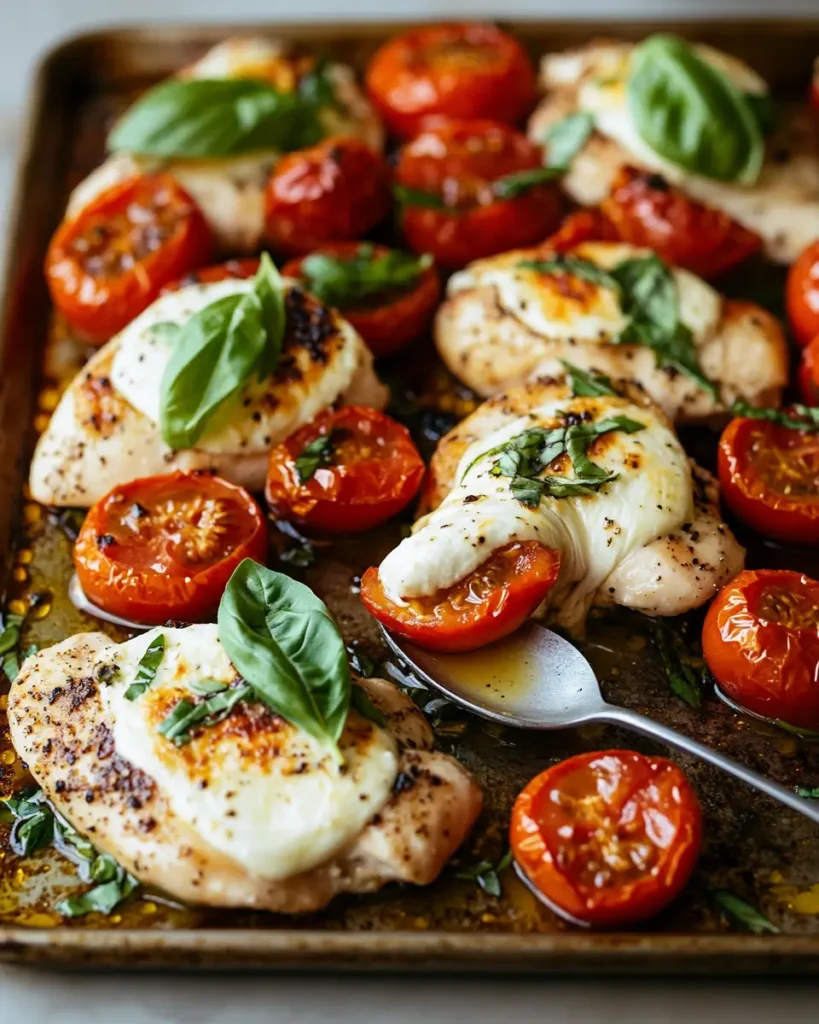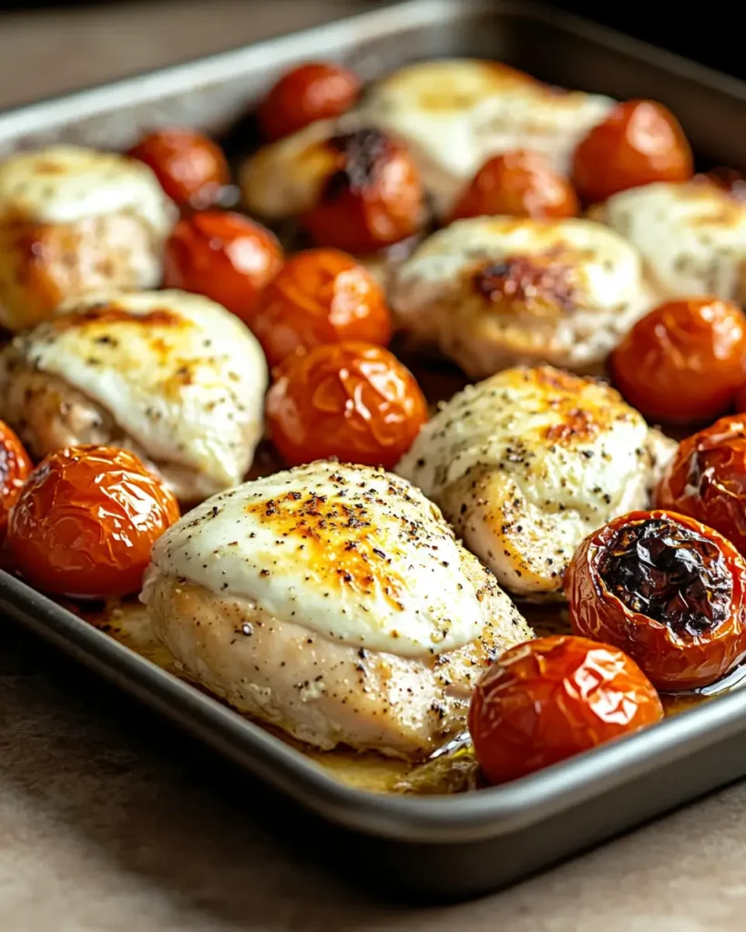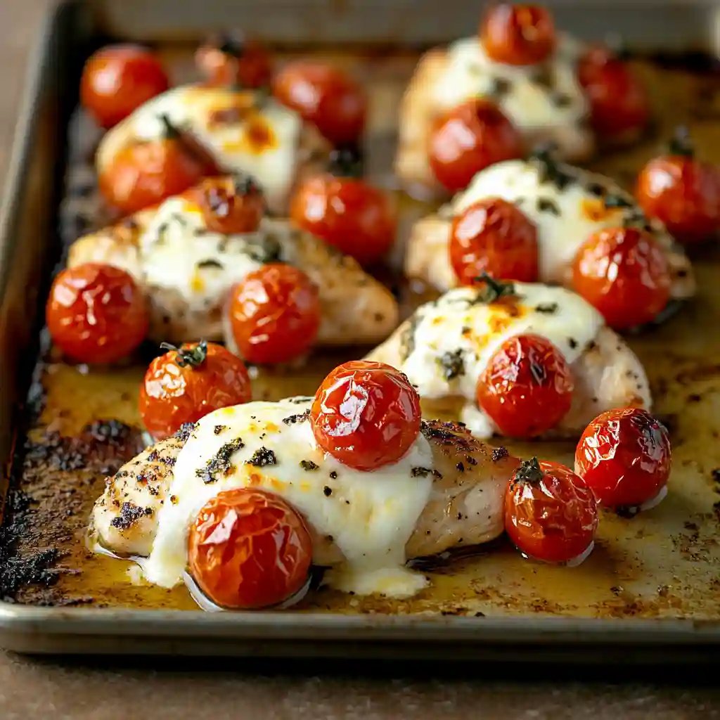 Easy Sheet-Pan Chicken with Tomatoes and Mozzarella