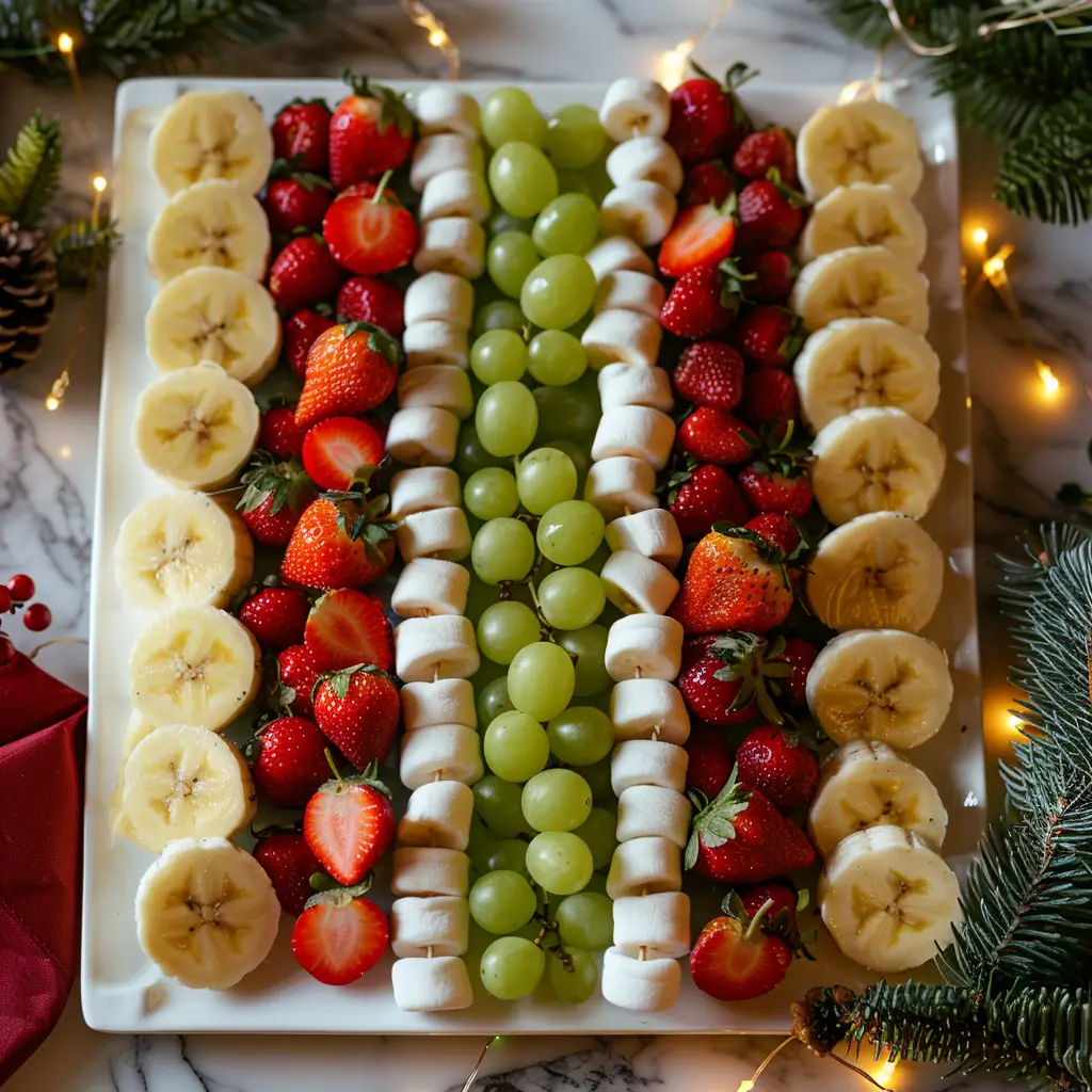 You can prep the fruit and assemble most parts, but it’s best to add the banana slices and marshmallows closer to serving. This keeps them looking bright and fresh, perfect for a Christmas Appetizers Party or Holiday Party Foods display.