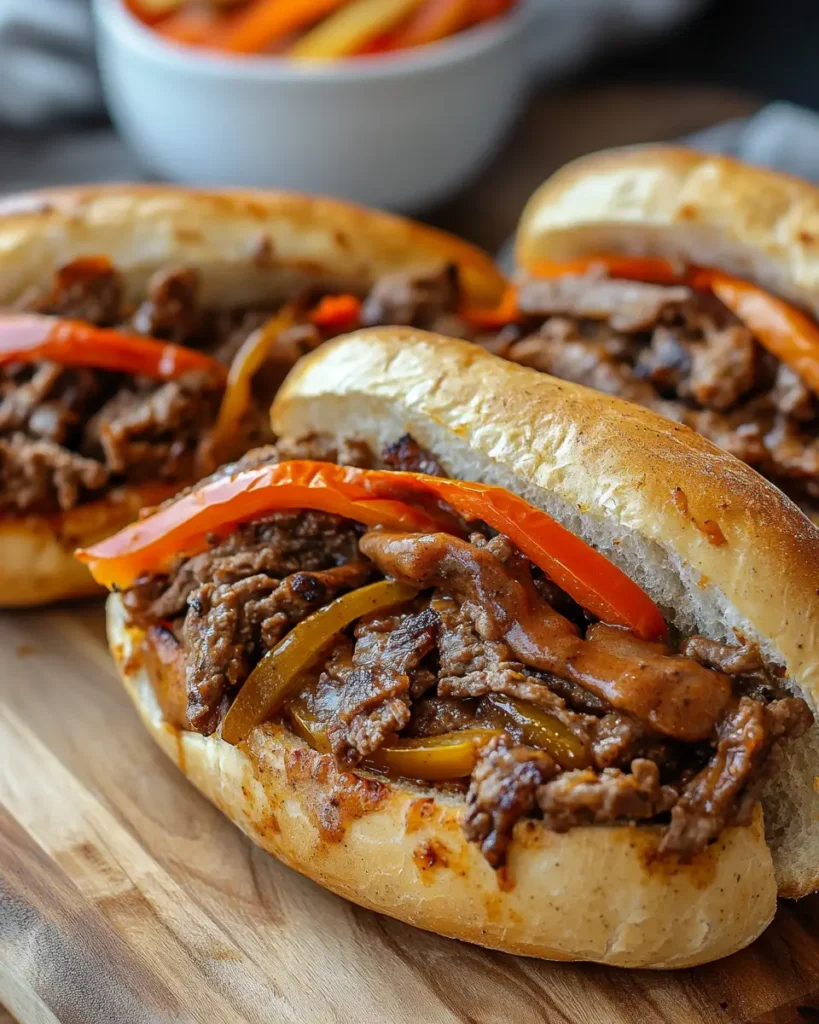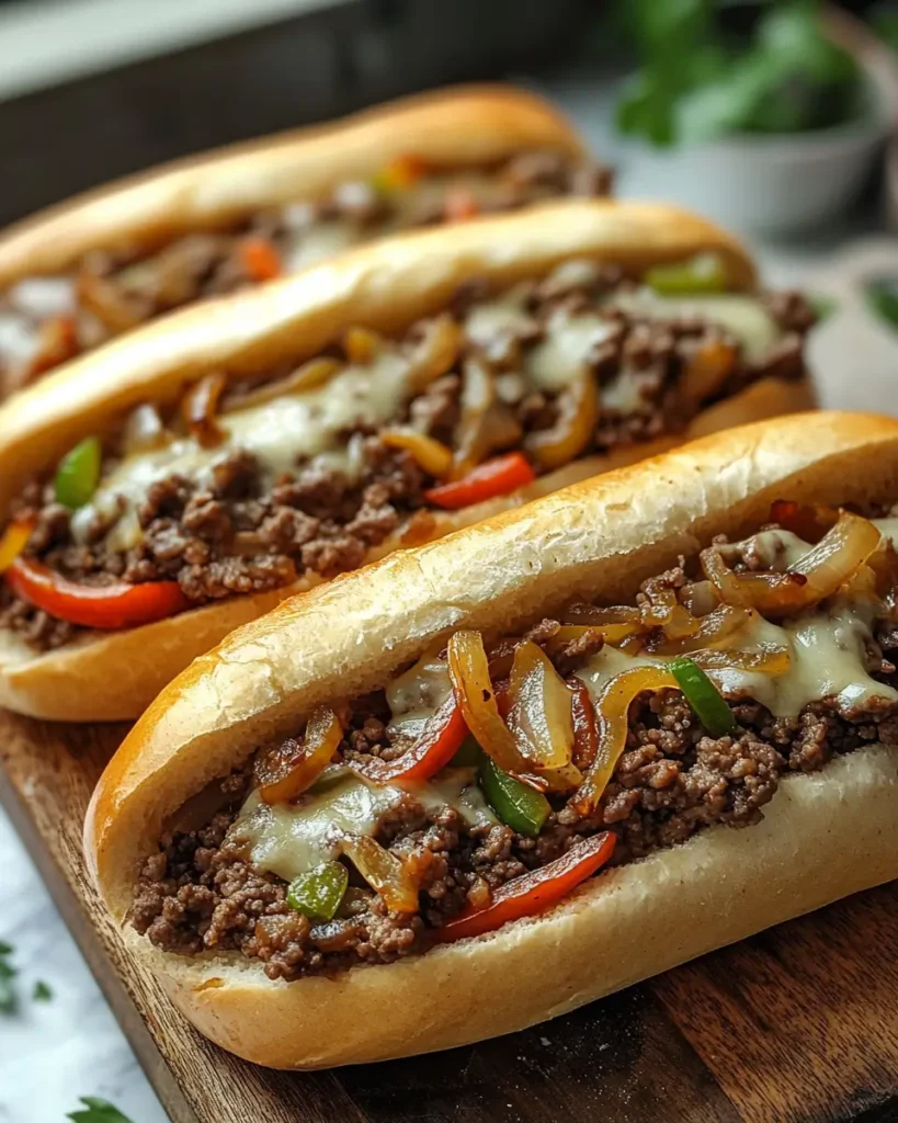 This Saucy Ground Beef Philly Cheesesteaks Recipe brings bold comfort to your table with simple steps and everyday ingredients. You get the rich flavor of a classic sandwich without the fuss, which makes this an easy Philly cheesesteak recipe for busy nights. The saucy beef, soft peppers, and melted cheese come together fast, so dinner feels calm and doable even on the longest days.