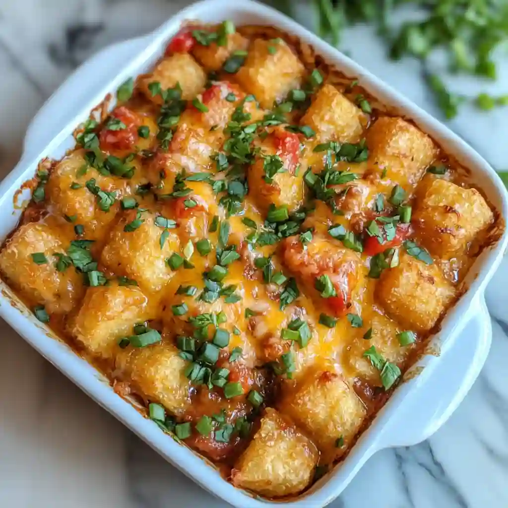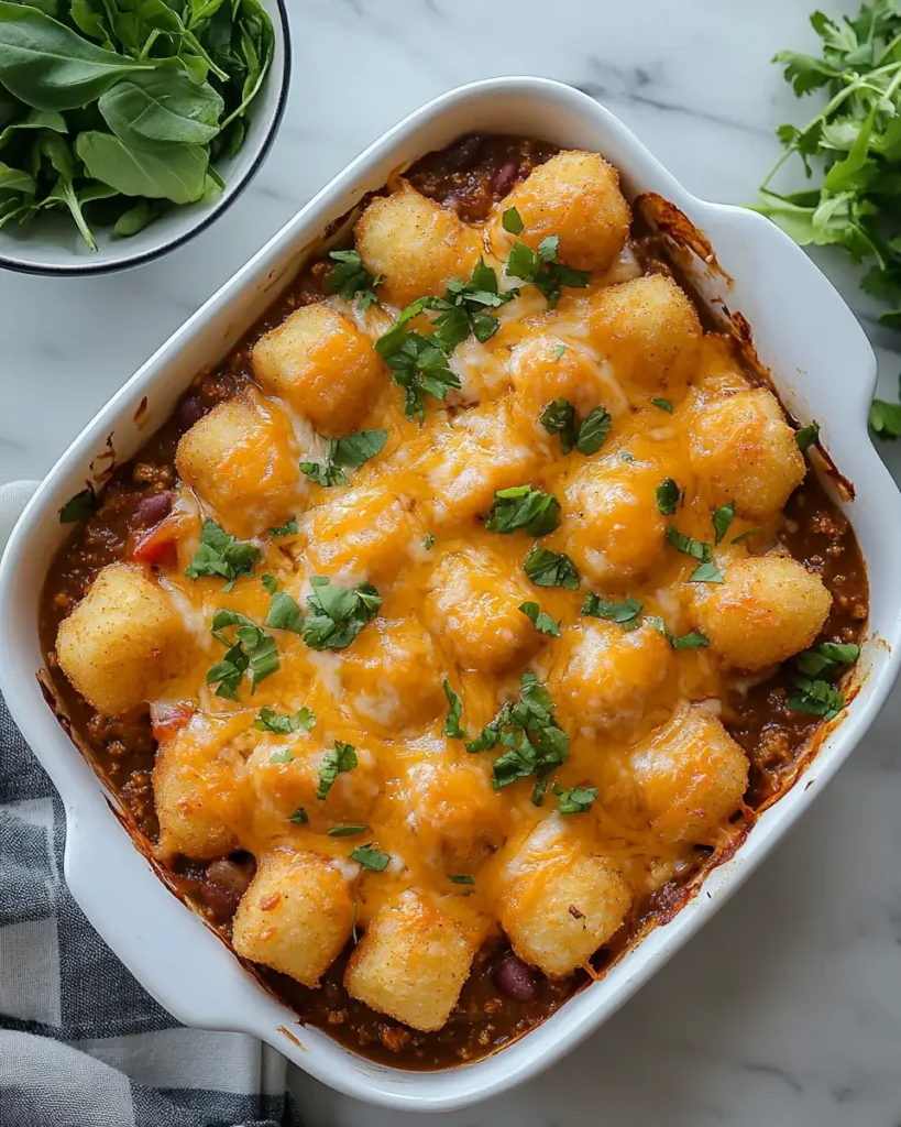 - Baked tater tots for crisp topping and classic comfort.