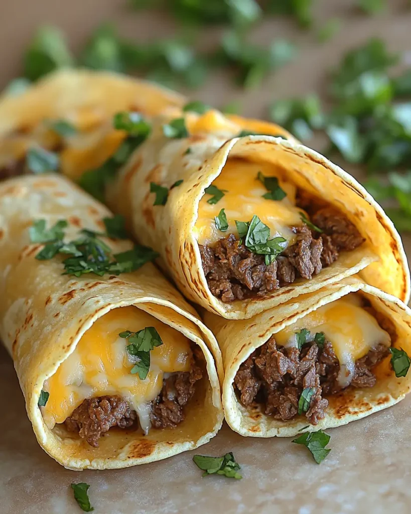 Make sure the beef mixture is not too watery before adding it to the tortillas. Let it simmer until thick, and avoid adding too many wet toppings before baking.