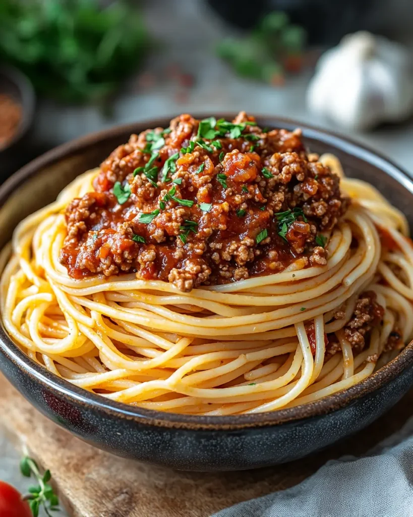 This homemade spaghetti sauce with ground beef recipe is warm, rich, and comforting. It fills the kitchen with a deep tomato smell and a gentle garlic aroma. The sauce simmers low and slow, turning simple pantry items into something special. The texture is thick and hearty, perfect for clinging to spaghetti. This is one of those easy meals with ground beef that feels cozy without extra work. If you enjoy quick dinner ideas that taste like you cooked all afternoon, this recipe is a great place to start.