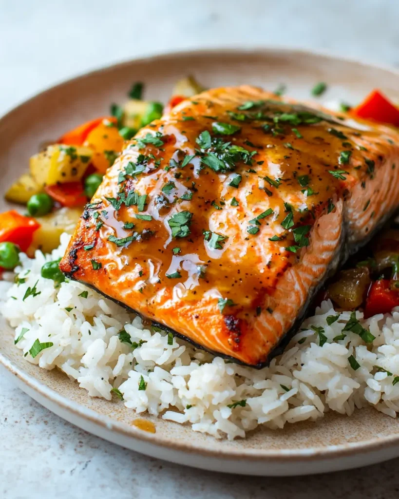• Versatile salmon recipe that pairs well with rice, vegetables, or salad
