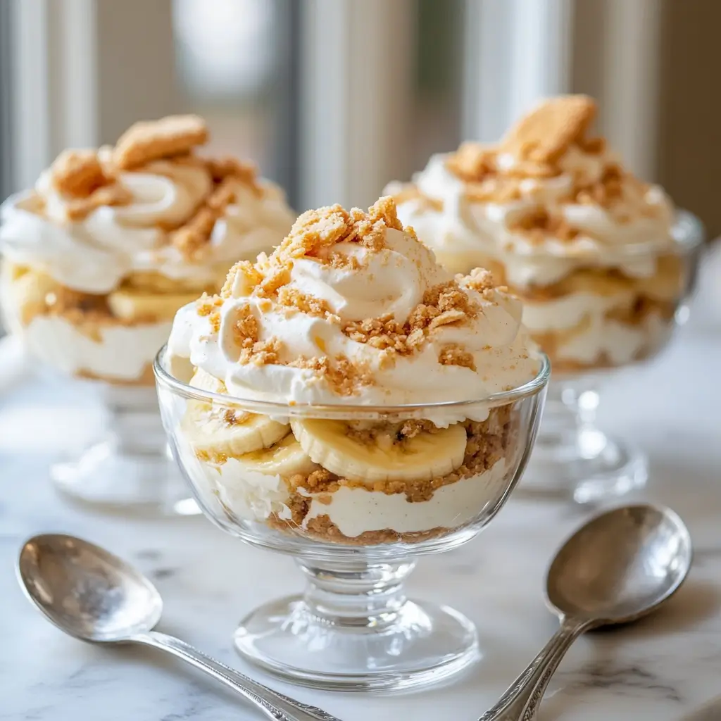 - Top with remaining whipped topping and optional garnishes like wafer crumbs or banana slices.