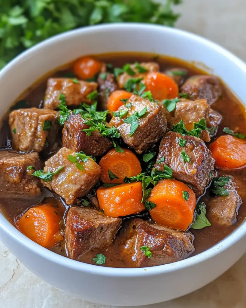 Each ingredient plays a clear role in building flavor and texture. The list stays focused so the stew feels full but not heavy.
