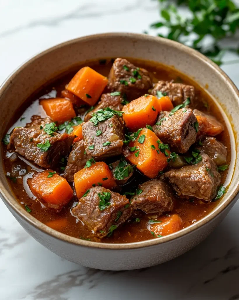 You can make this stew on the stovetop using a heavy pot with a lid. Brown the lamb first, then simmer everything gently for about 1 hour and 30 minutes until tender. The flavor stays rich, but the cooking time is longer. This approach works well if you enjoy traditional stew recipes and slow cooking. Keep the heat low so the sauce stays smooth and does not scorch.