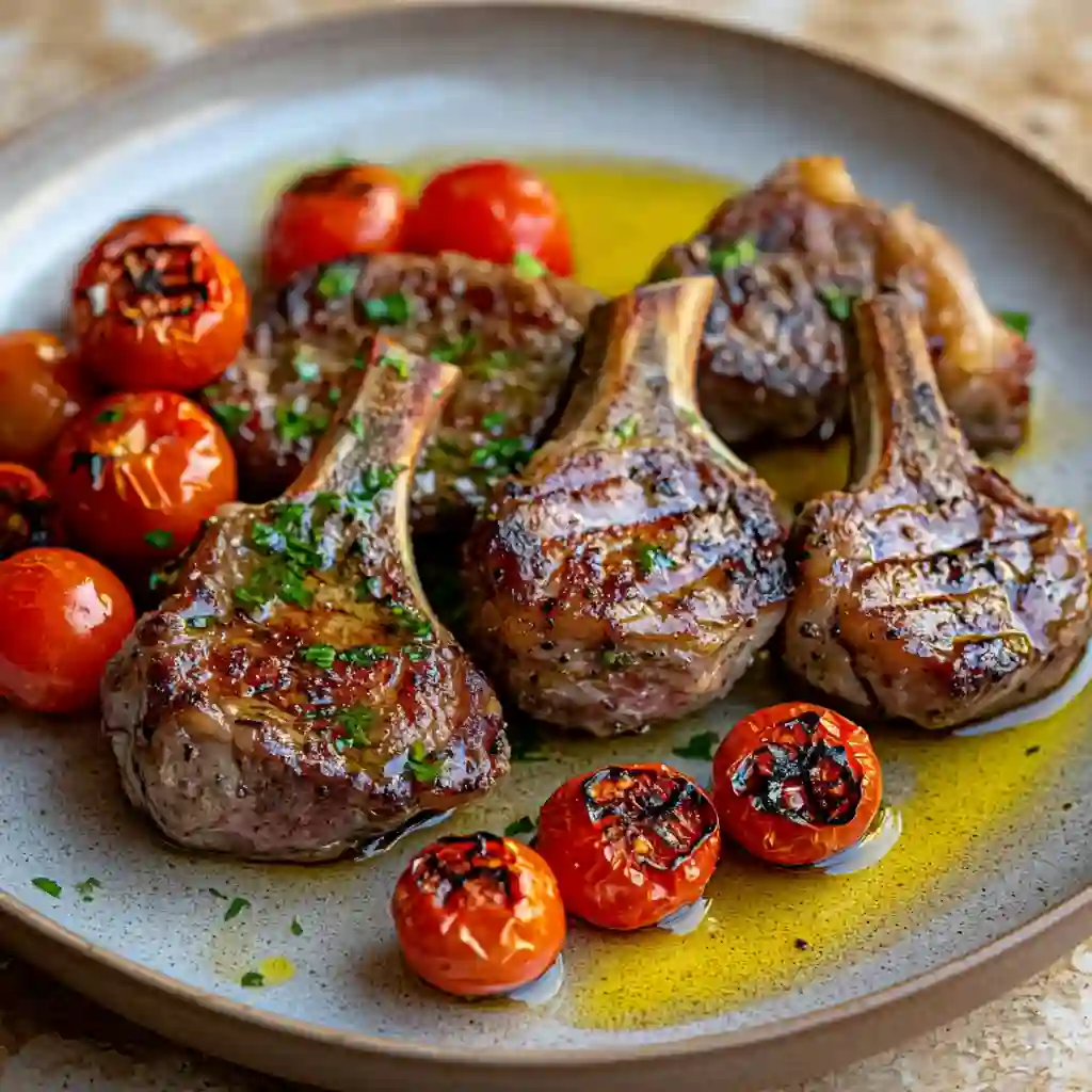 Lamb Chops Scottadito with Charred Cherry Tomatoes brings bold flavor to the table with very little effort. This Italian inspired lamb chop dinner idea cooks quickly in a hot pan while sweet tomatoes blister and soften beside the meat. As a result, the dish tastes bright, rich, and balanced at the same time. Many home cooks love this recipe because it feels special but stays simple enough for a weeknight meal. The juicy lamb chops pair beautifully with the light char of cherry tomatoes, and together they create a meal that feels warm and satisfying.