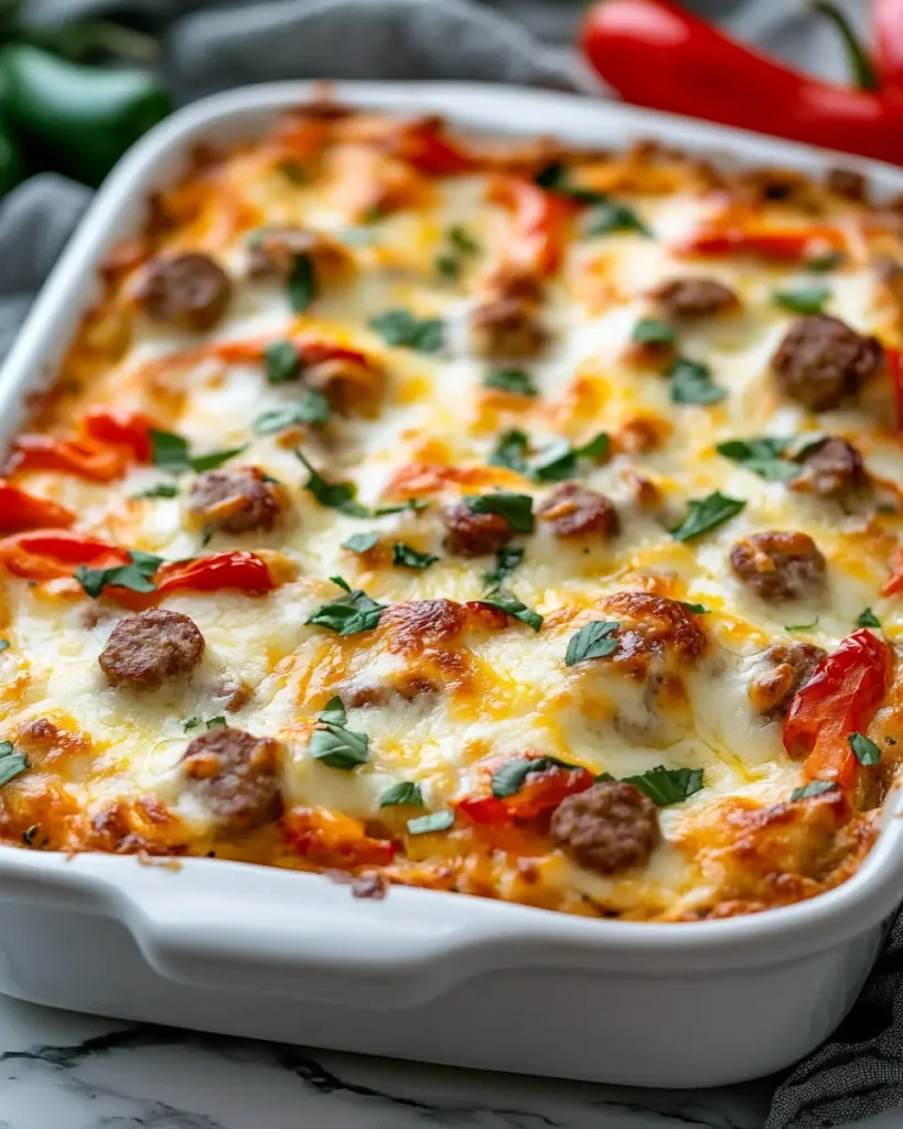 You can prepare this casserole the night before and bake it fresh the next day. It also freezes well after baking and cooling completely. For variety, swap the sausage with ground beef, add spinach, or use cheddar cheese instead of mozzarella.