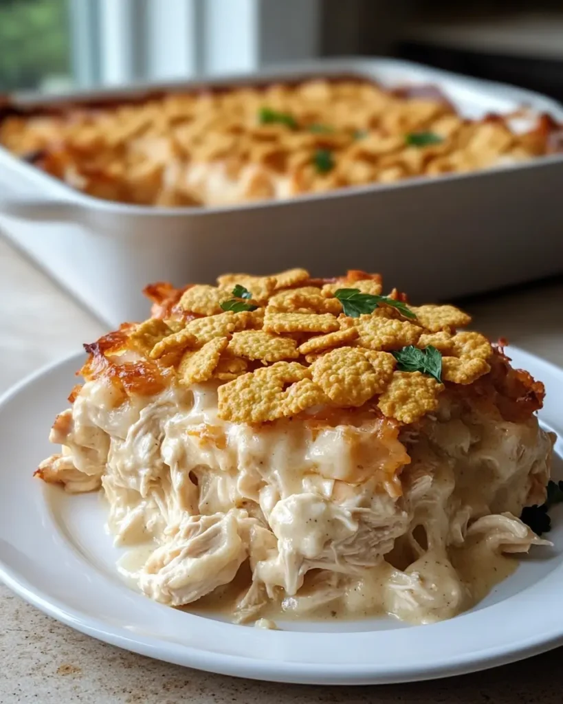 This creamy casserole pairs nicely with simple sides that balance the rich texture. Fresh green beans, roasted carrots, or a light salad all work well. Many families also enjoy serving it with simple bread to soak up the creamy sauce. If you enjoy casserole style meals, you may also like the hearty flavor of cheesy sloppy joes casserole or the protein packed ground beef and egg casserole when planning more dinner ideas casserole for the week.