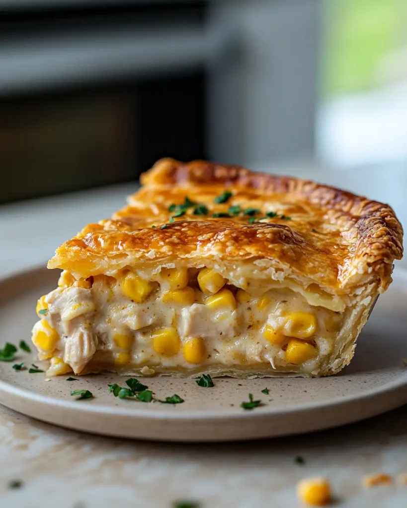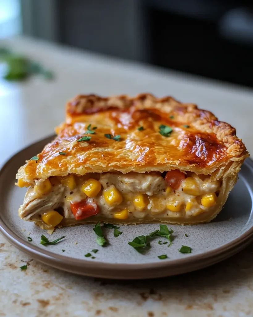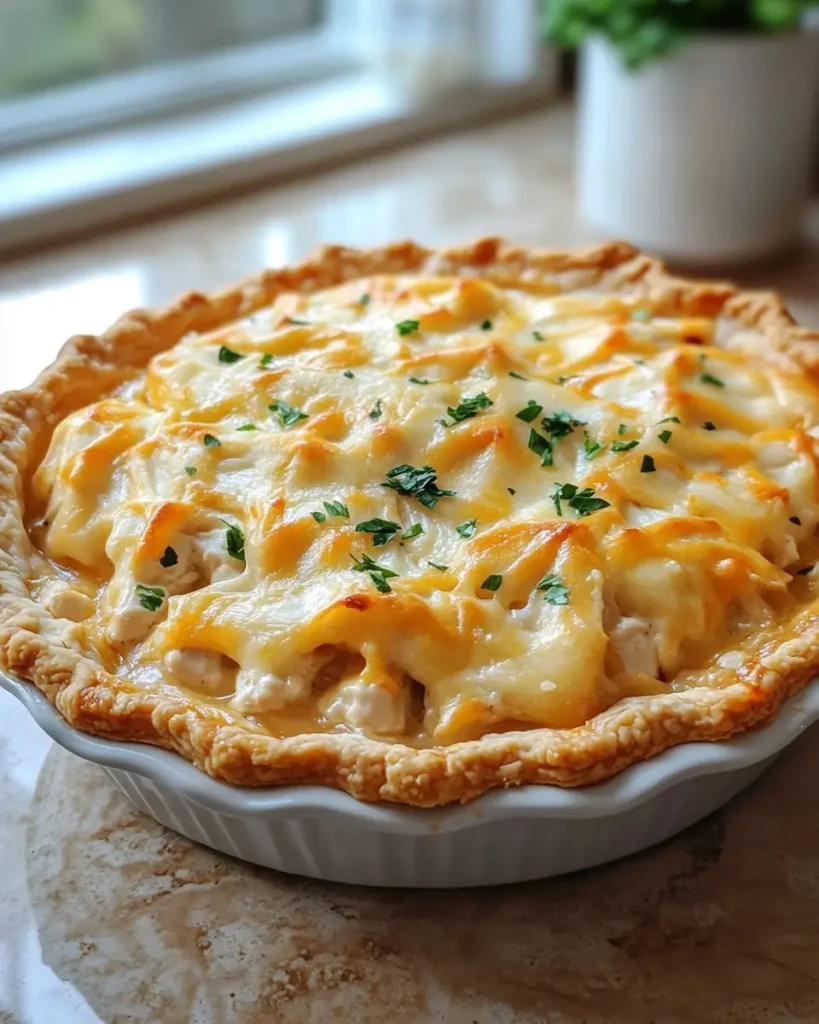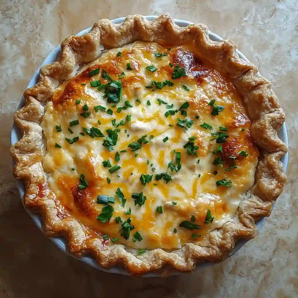 - Bake for 30–35 minutes until the crust is golden brown. Let the pie rest for 10 minutes before slicing. Garnish with fresh parsley and serve.