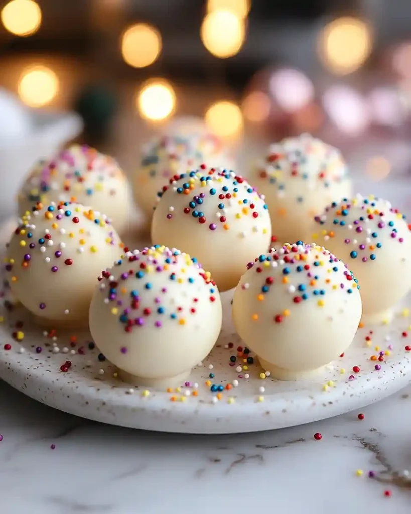 You can use chocolate cake instead of vanilla if you want a deeper flavor. You can also use colored melting chocolate for a brighter party look. If you want these to fit New Year Birthday Cake themes, add a number or tiny topper on top. For New Years Snacks Ideas, make the balls smaller so guests can grab and go. For New Year’s Eve Food Ideas, serve them with fruit or a simple drink tray. If you want New Year Deserts that shine, brush edible glitter on top for a soft sparkle.