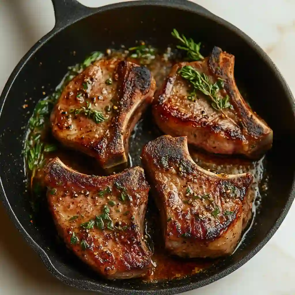 - Spoon pan juices over the chops and serve warm.