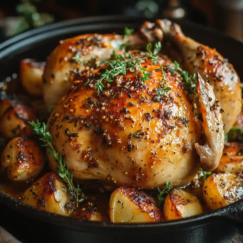 Yes, you can start by browning the chicken on the stovetop to get that golden crust, then finish it in the oven. A cast iron Dutch oven holds heat perfectly, making this method one of the easiest ways to create a Baked Whole Chicken Recipe Dutch Oven style with beautiful results.