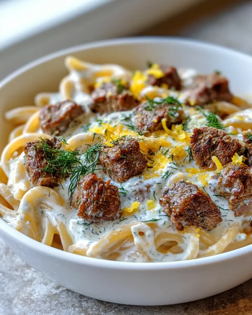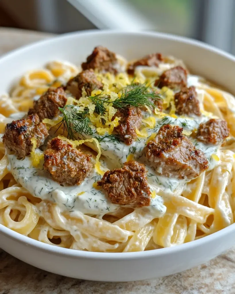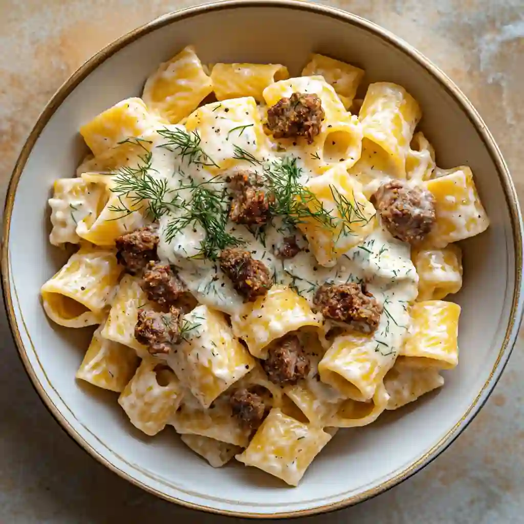 Spiced Lamb and Dill Yogurt Pasta is a quick Mediterranean-inspired dish featuring savory spiced ground lamb tossed with tender pasta and a creamy yogurt sauce flavored with fresh dill and lemon. The warm spices and cool herbs create a balanced, comforting meal that’s perfect for easy weeknight dinners.