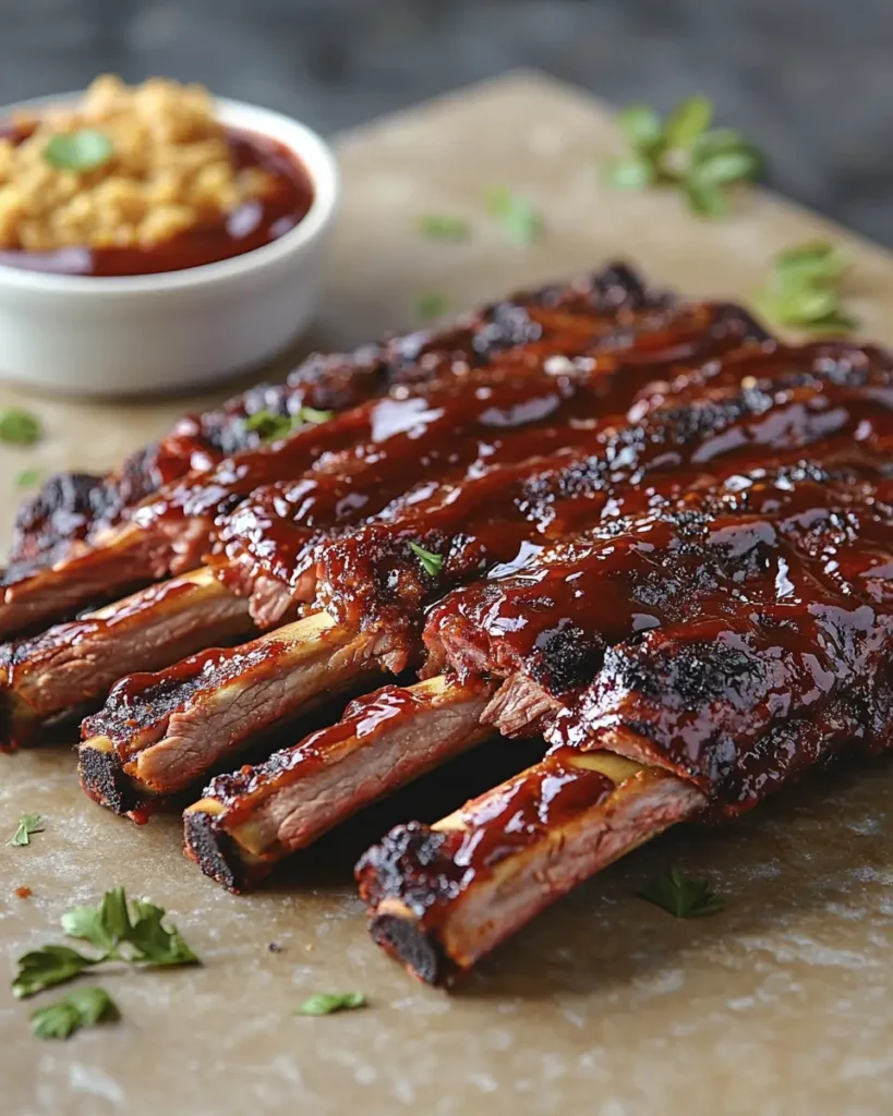 Slow baked to perfection, these beef ribs turn irresistibly tender and juicy, coated in rich barbecue flavor. A comforting, no fuss oven recipe that fills your kitchen with warmth and delivers a hearty, satisfying meal every time.