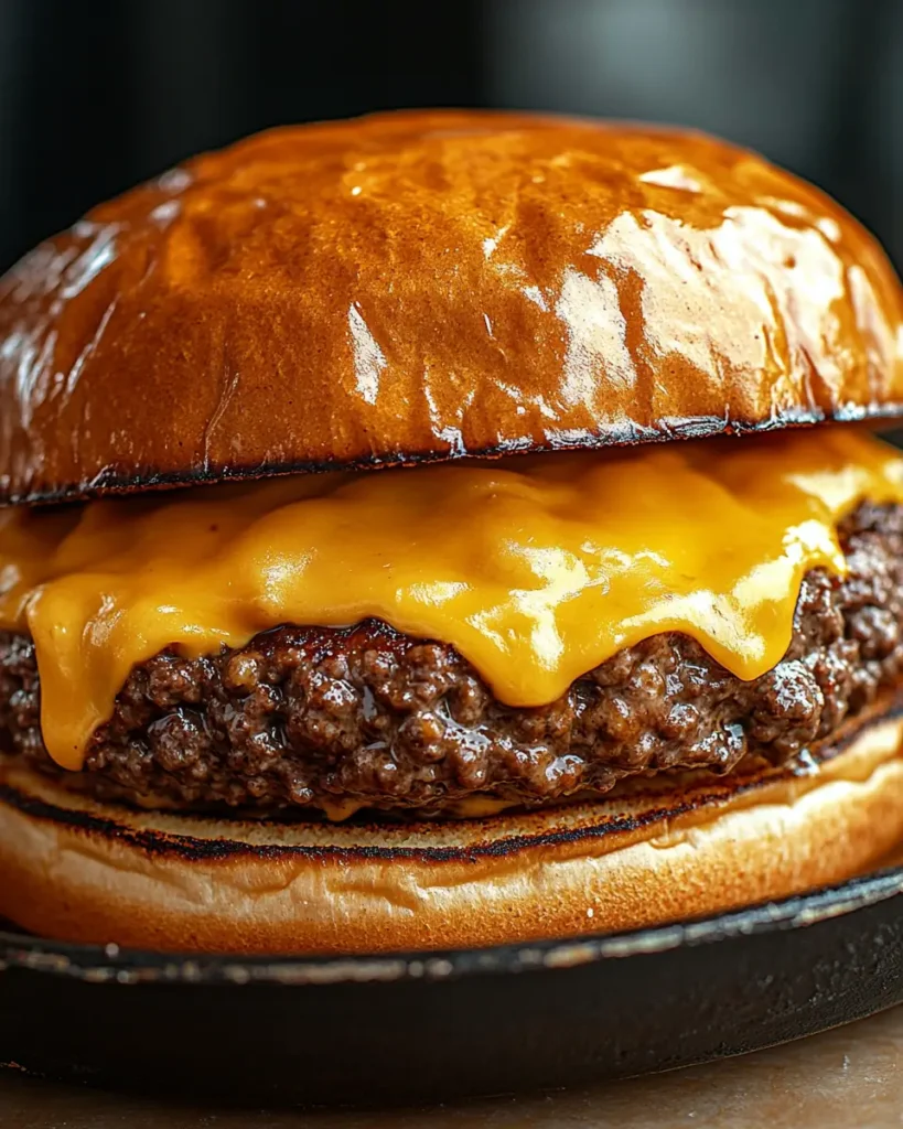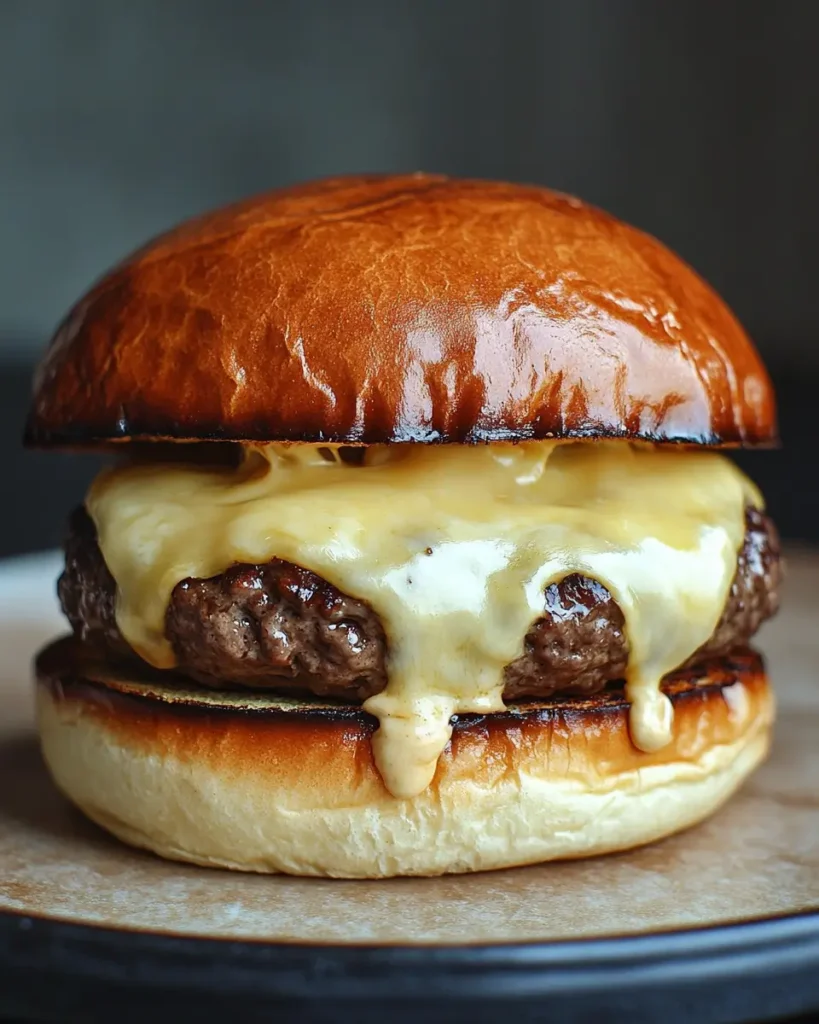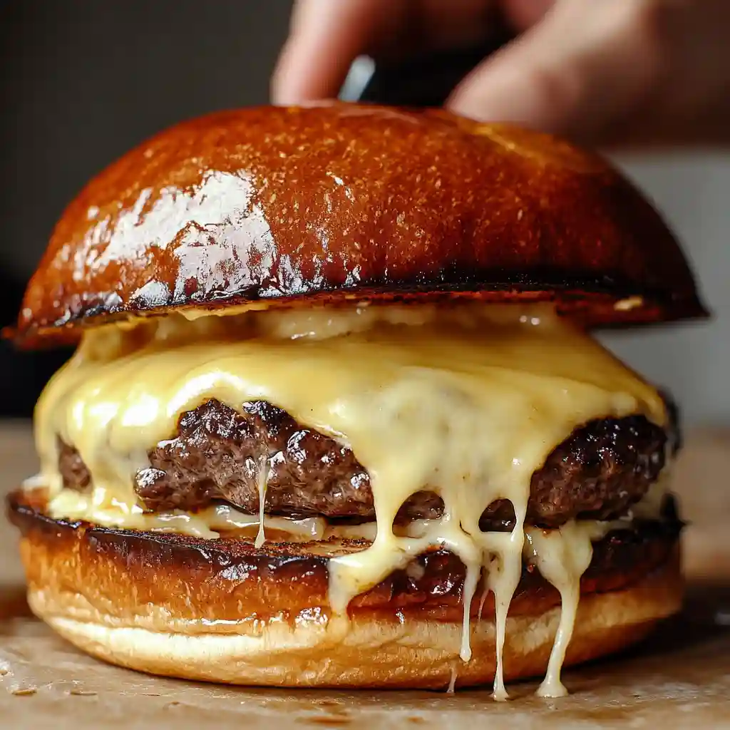 The key is not overworking the meat when forming patties. Gently shape them and avoid pressing them too much while cooking. Also cook on medium heat so the outside browns while the inside stays tender. A slice of melted cheese also helps keep the burger moist and flavorful.