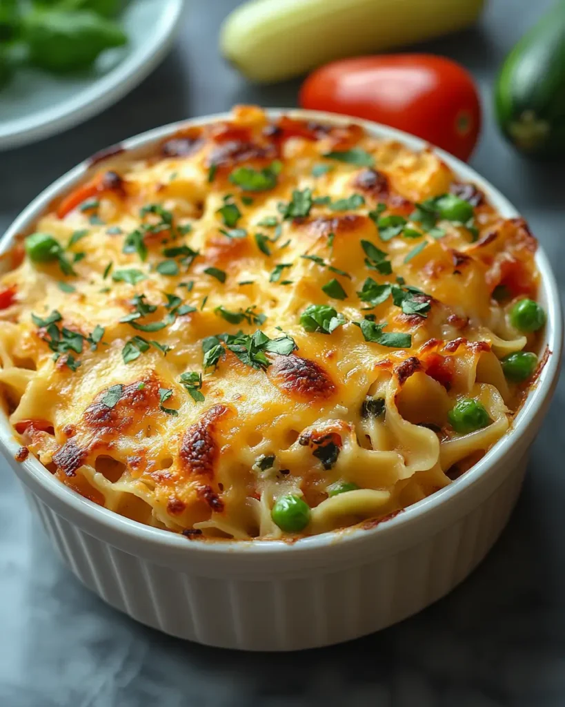 This casserole has mild flavors and soft textures, which makes it a strong option for kid friendly dinners. You can cut the vegetables smaller so they blend into the sauce. Using familiar noodles and cheese also helps children feel comfortable with the meal. It is a gentle way to add vegetables without pressure.